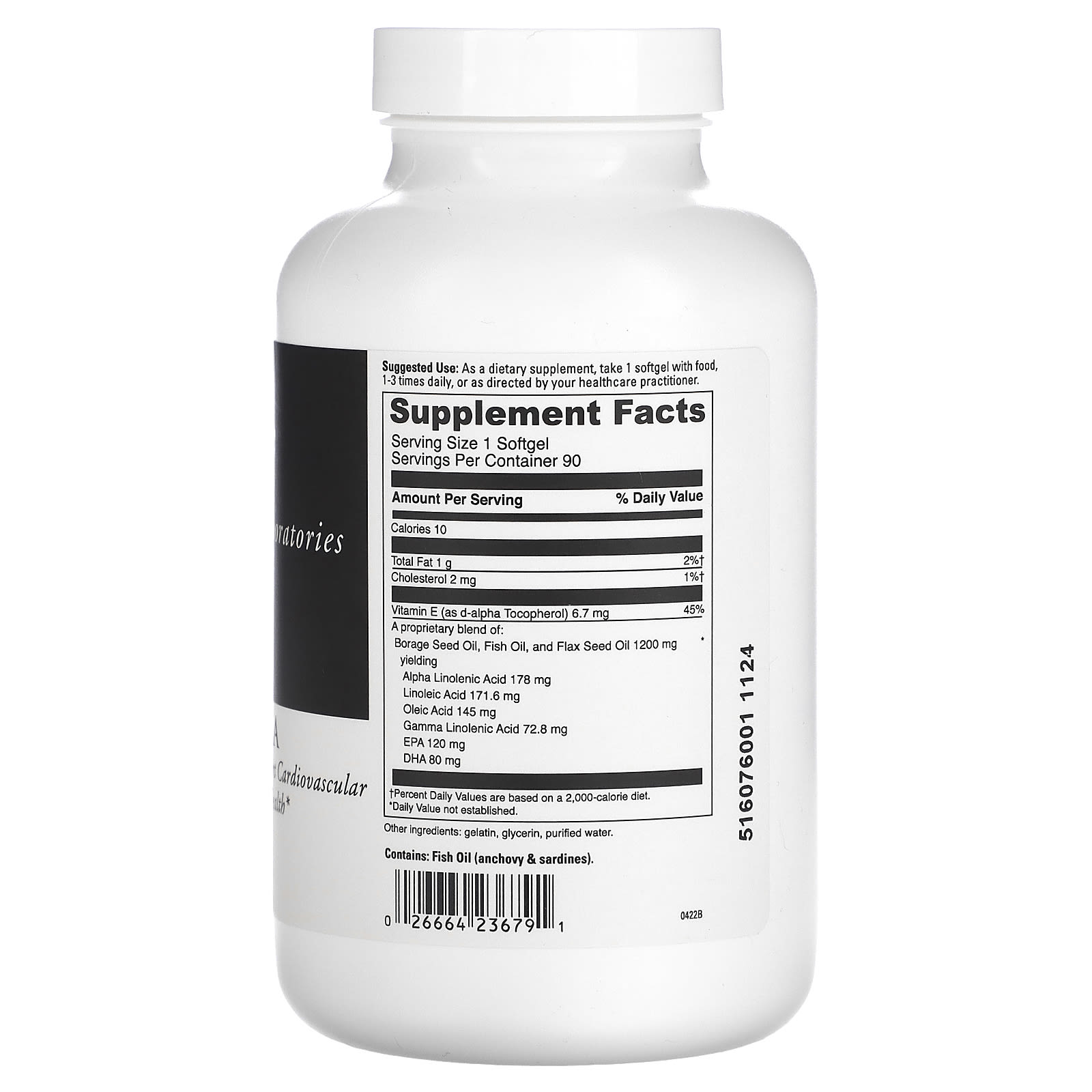 | Uma mistura patenteada de: Óleo da Semente de Borragem, Óleo de Peixe e Óleo da Semente de Linhaça Rendendo: Ácido Alfa-Linolênico Ácido Linoleico Ácido Oleico Ácido Gama-linolênico EPA DHA |