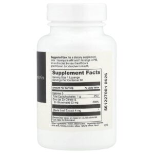 O zinco é um mineral essencial encontrado em todas as células do corpo. Ele é essencial para uma ampla gama de funções fisiológicas e é um importante cofator para mais de 200 enzimas, mais do que qualquer outro mineral. Essas pastilhas de zinco com sabor de limão são um suplemento saboroso para crianças e adultos. Elas contêm zinco na forma de citrato para ajudar na função do sistema imunológico, o que é especialmente importante durante os meses de inverno. A forma de pastilha é ideal para reforçar os tecidos da garganta.