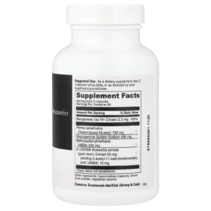 A fórmula avançada apresenta cinco nutrientes eficazes, incluindo Perna canaliculus, glicosamina e uma forma patenteada de ácido bosvélico para promover saúde, conforto e flexibilidade das articulações.