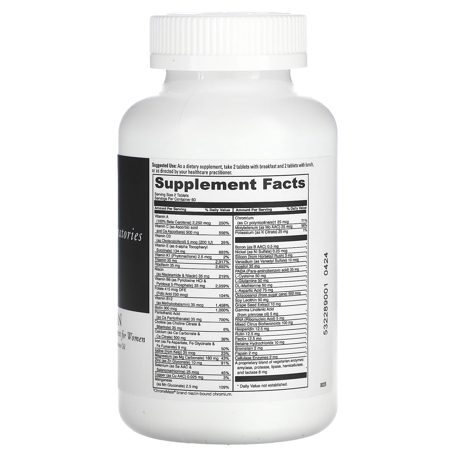 Spectra ™ Woman é o único suplemento multivitamínico de alta potência e espectro total que contém 56 nutrientes, incluindo os mais importantes para a mulher de hoje, como cálcio (para a saúde dos ossos), ferro (para glóbulos vermelhos saudáveis), betacaroteno, biotina ( para a saúde das unhas e dos cabelos), ácido gama-linolênico de óleo de prímula, octacosanol, extrato de semente de uva (um potente antioxidante importante para manter a força capilar) e enzimas digestivas vegetarianas.