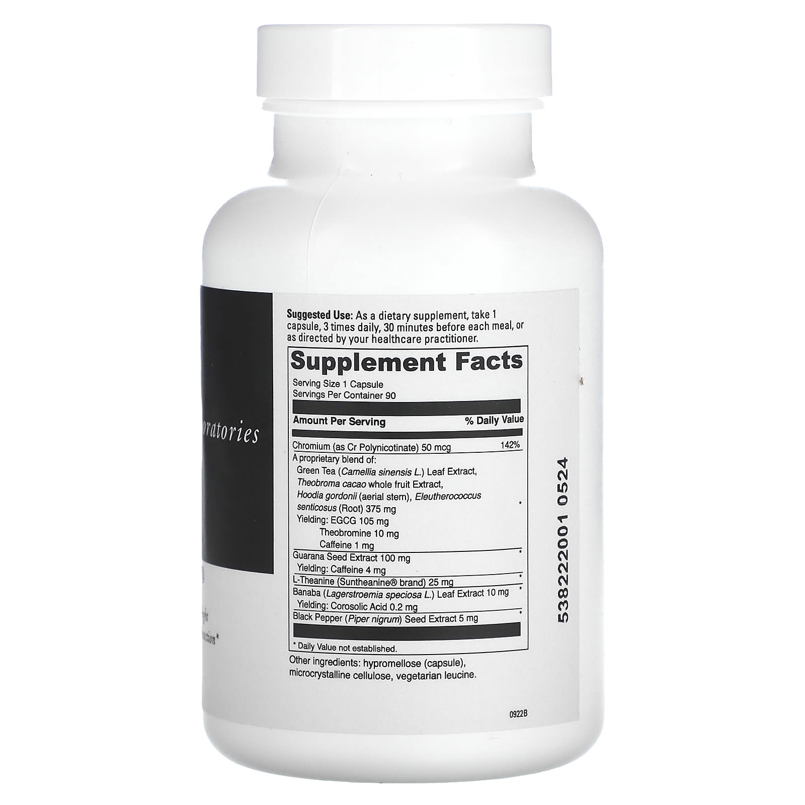 | Uma mistura patenteada de: Chá Verde (Camellia sinensis L.) Extrato da Folha, Extrato da fruta inteira de Theobroma cacao, Hoodia gordonii (caule aéreo), Eleutherococcus senticosus (raiz) Rendimento: EGCG Teobromina Cafeína |
