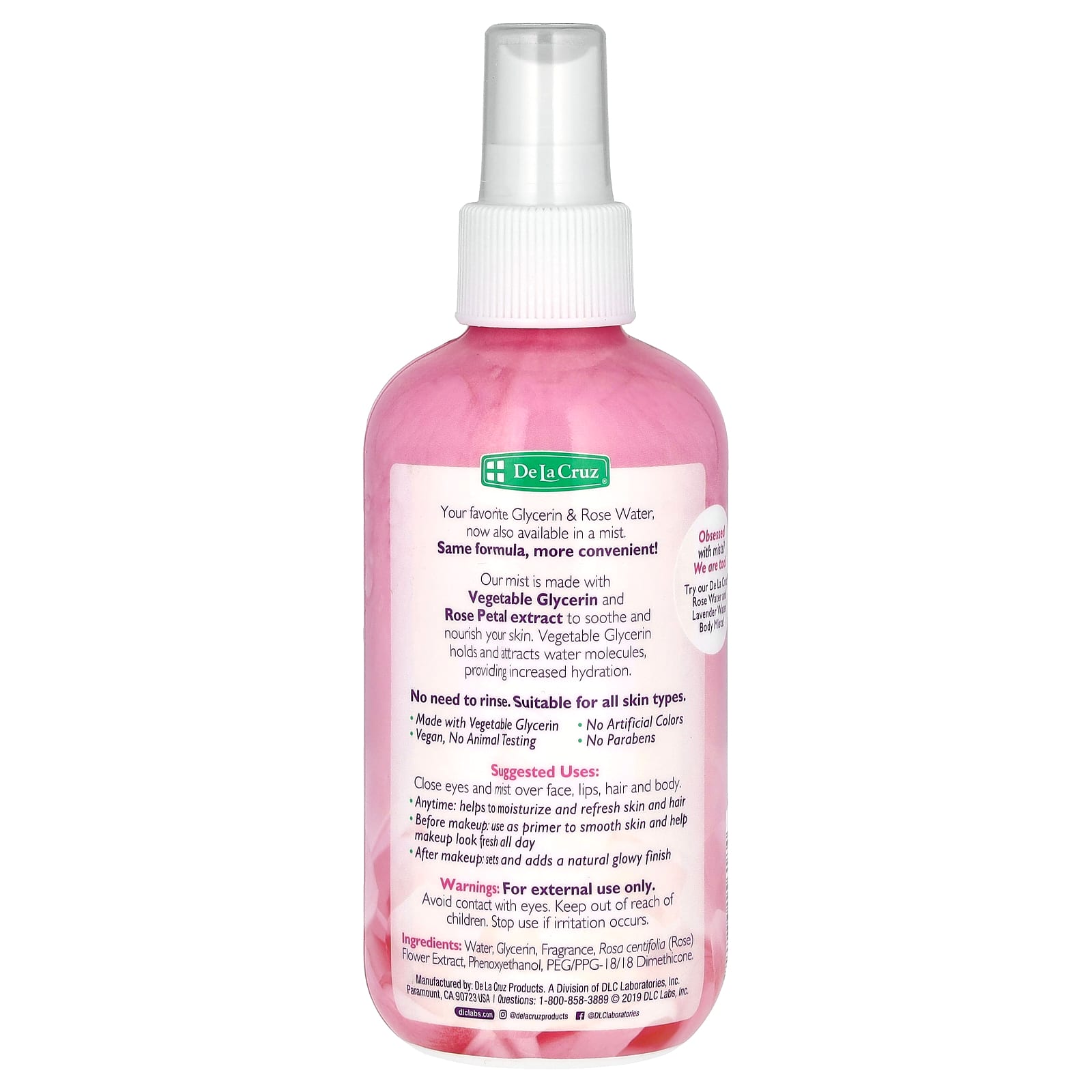 De La Cruz Spray para Hidratação com Glicerina e Água de Rosas 236 ml (8 fl oz) – De La Cruz Cuidados Pessoais Óleos Essenciais e Aromaterapia Spray de Óleo Essencial.