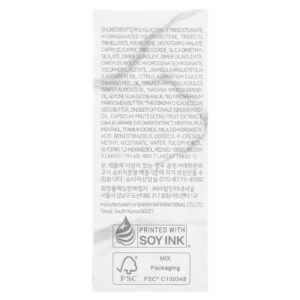 Triisostearate de poliglicerila-2, poliisobuteno hidrogenado, tridecyl trimellitate, polybutene, diisostearyl malate, caprylic/capric triglyceride, silica dimethyl silylate, dimer dilinoleyl dimer dilinoleate dimer dilinoleyl hydrogenated rosinate acetato de tocoferol, óleo de Lavandula angustifolia (lavanda), óleo da casca de Citrus aurantium dulcis (laranja), *óleo de Prunus amygdalus dulcis (amêndoa doce), *óleo do grão de Argania spinosa, óleo de Glycine soja (soja), *manteiga de Butyrospermum parkii (karité), * manteiga da semente de Theobroma cacao (cacau), óleo da raiz de Zingiber officinale (gengibre), extrato da fruta de Capsicum frutescens extrato da flor de Dahlia variabilis, mentol PCA mentol, dióxido de titânio, mica, dehydroacetic acid, benzotriazolyl dodecyl p-cresol methyl nicotinate, água, tocoferol, glicerina, 1,2-hexanediol, vermelho 6 (CI 15850), amarelo crepúsculo laca de alumínio (CI 19140), vermelho 7 laca de alumínio (CI 15850:1).
