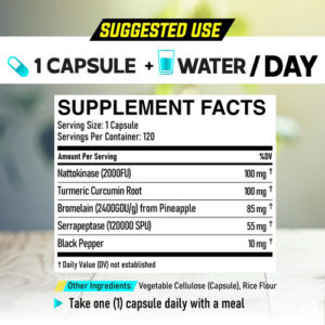 • O suplemento Nattokinase é misturado com extrato de Natto, cúrcuma, curcumina, bromelaína, serrapeptase e pimenta preta, proporcionando um humor equilibrado, um coração forte, um sistema imunológico e um bem-estar geral. Fórmula especial para homens e mulheres Comece hoje!