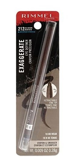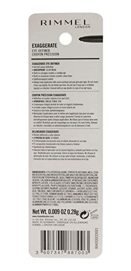 Definidor de olhos à prova d'água automático Rimmel Exaggerate. Textura macia e cremosa em um lápis retrátil com borrão embutido para uma mistura sutil e ponta retrátil para linhas de alta precisão. A fórmula à prova d'água dura até 10 horas de uso. Escolha sua tonalidade de fosco cremoso a altamente metálico, tudo intensamente pigmentado.
