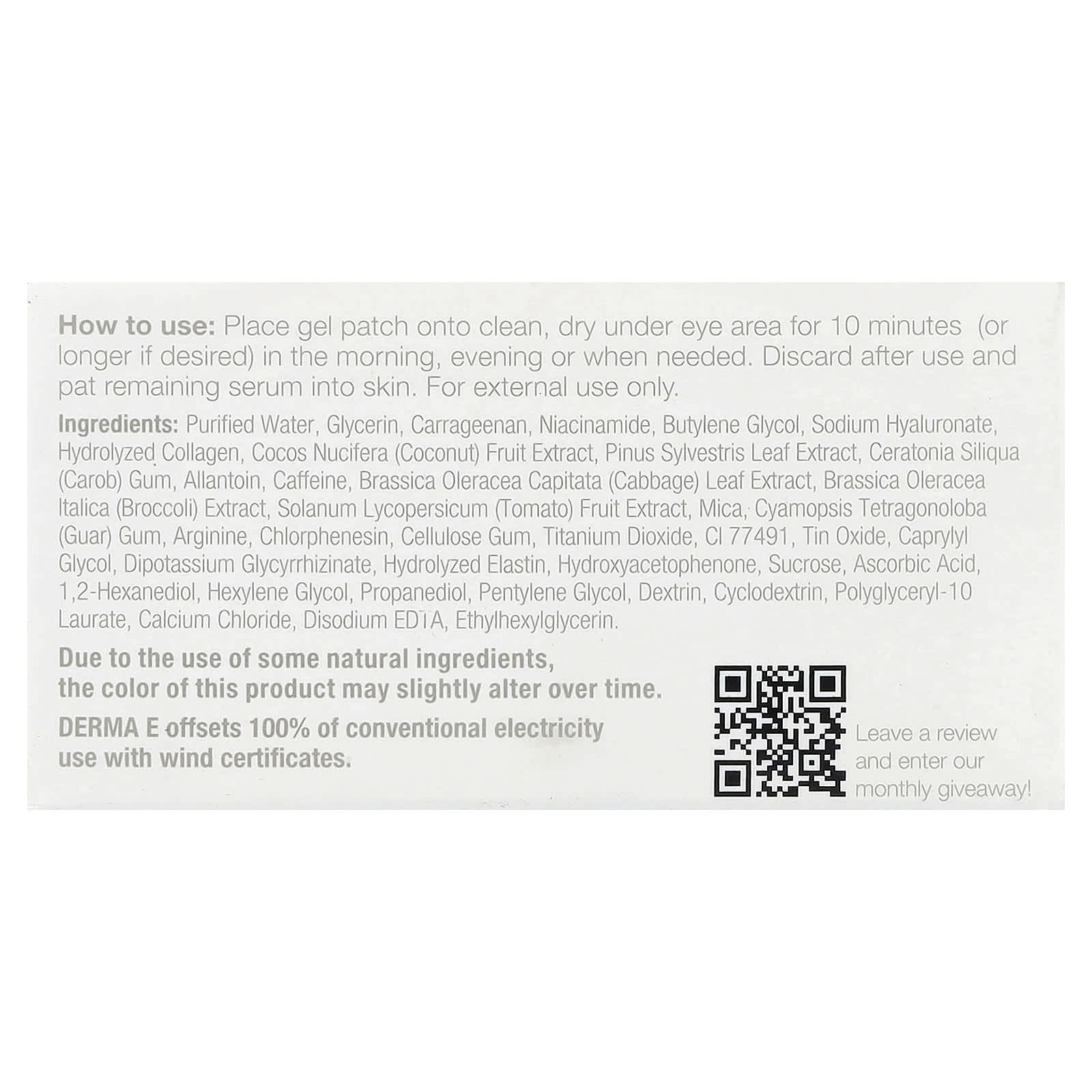 Coloque o adesivo de gel na área limpa e seca sob os olhos por 10 minutos (ou mais, se desejar) de manhã, à noite ou quando necessário. Descarte após o uso e aplique com o soro restante na pele.