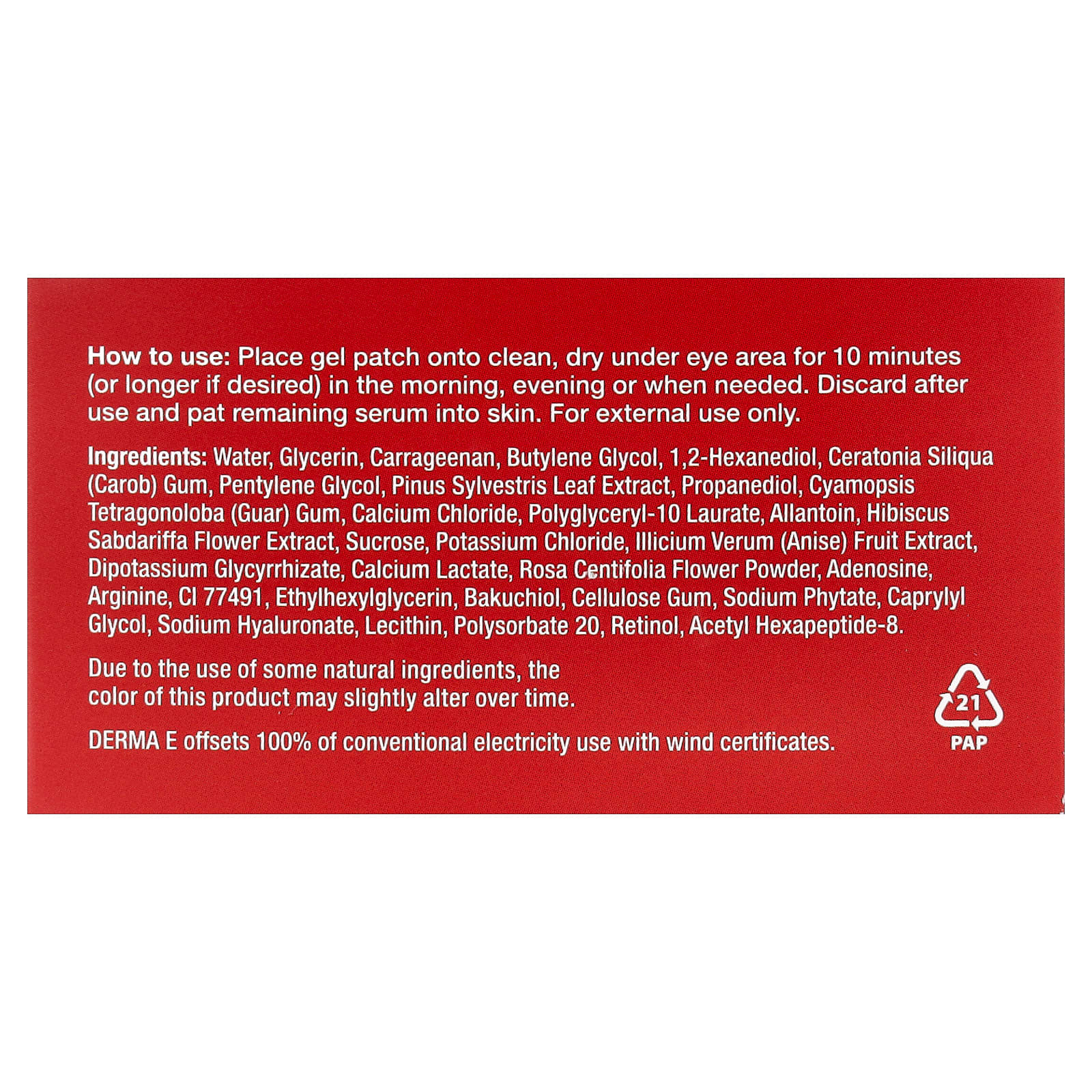 Coloque o adesivo de gel sobre a área limpa e seca da área inferior dos olhos por 10 minutos (ou mais, se desejar) pela manhã, à noite ou quando necessário. Descarte o produto após o uso e aplique o sérum restante na pele.