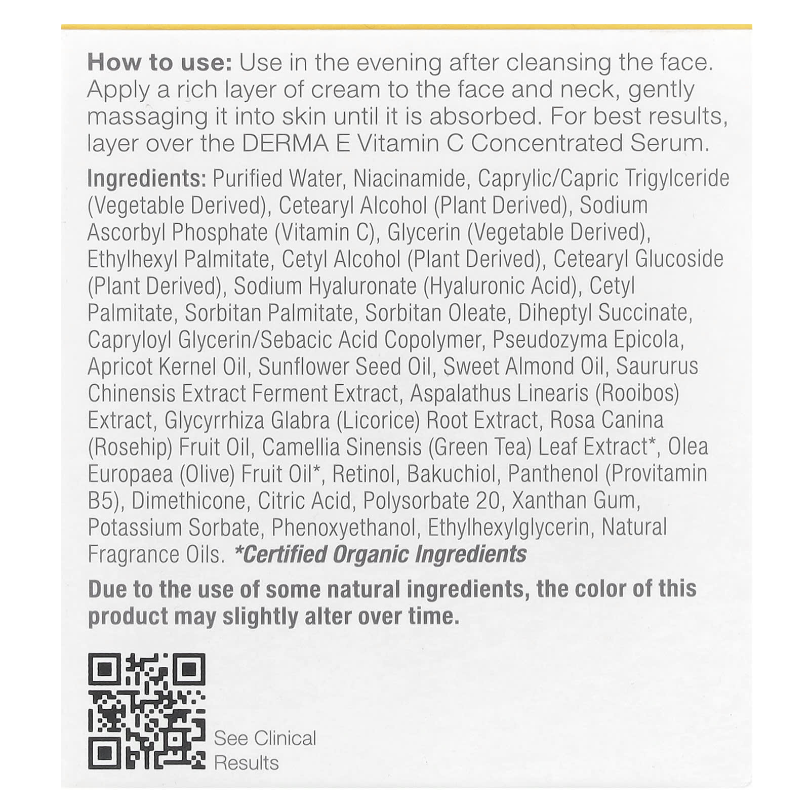 DERMA E Creme Noturno Intenso de Vitamina C 56 g (2 oz) – DERMA E Beleza Hidratantes Faciais e Cremes Hidratantes e cremes para a noite Beleza por Ingrediente Cuidados com a Pele com Vitamina C.