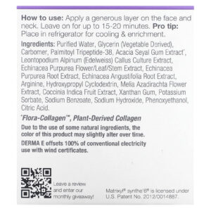 Nossa máscara de gel luxuosa e refrescante restaura e rejuvenesce para uma pele com aparência mais jovem. Peptídeos poderosos misturados com biornutrientes, Flora-Collagen ™ tem como alvo a perda de elasticidade, o embotamento e as rugas para uma tez visivelmente mais lisa e flexível. Resfria instantaneamente com o contato para refrescar e reenergizar a pele. As Células-Tronco de Plantas Ricas em Antioxidantes e os Extratos de Edelweiss fortalecem a barreira da pele e ajudam a aumentar a hidratação para uma tez levantada e suavizada.