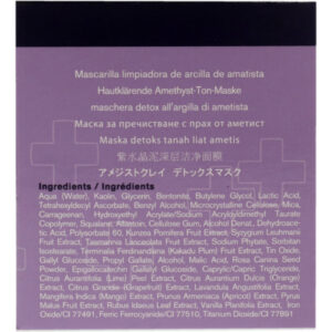 Amethyst clay absorbs impurities and detoxifies without removing natural oils. Provides gentle resurfacing exfoliation and helps leave skin feeling smoother, brighter, and softer. With Vitamin C rich Kakadu Plum, Tasmanian Pepper Berry.