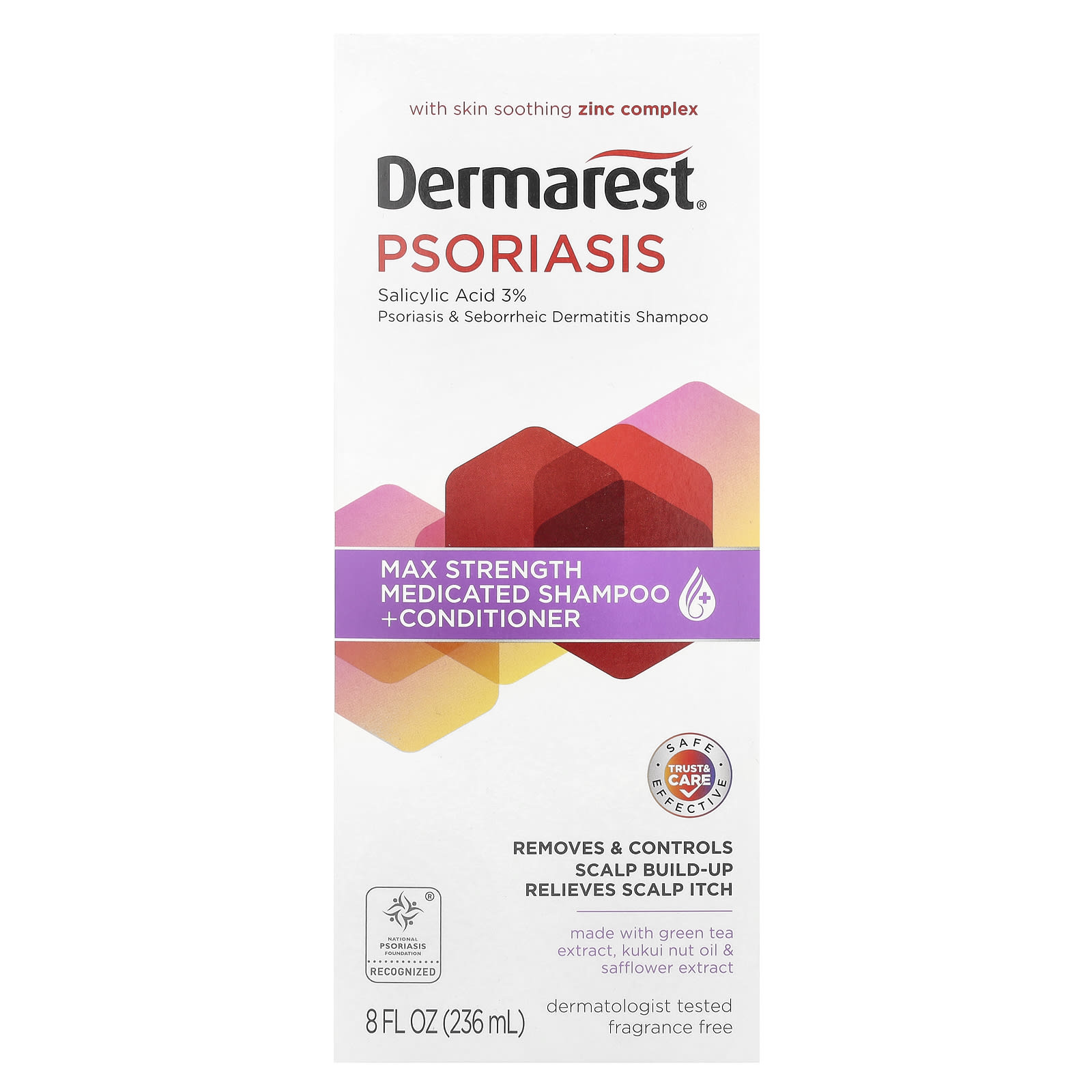 Dermarest Psoríase Shampoo Medicamentoso de Máxima Potência + Condicionador Sem Perfume 236 ml (8 fl oz) – Dermarest Banho e Cuidados Pessoais Armário do Banheiro Tratamento para Pele Psoríase Cabelos Condicionador.