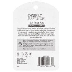 A Fita Dental Desert Essence é naturalmente encerada e saturada com óleo de melaleuca, inerentemente antisséptico.