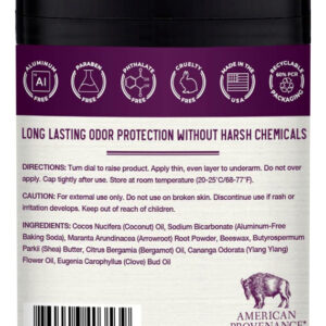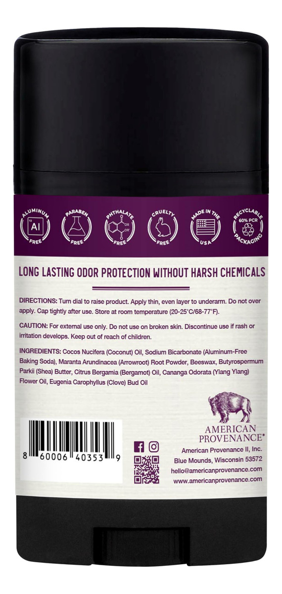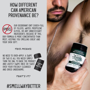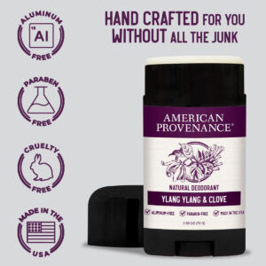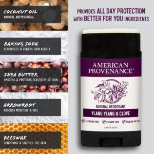 Na American Provenance, acreditamos que os produtos naturais sempre funcionam melhor. É por isso que formulamos um desodorante natural com ingredientes de origem botânica, cujos nomes você pode pronunciar facilmente. Aproveite os benefícios de inibição de odores para manter um cheiro fresco e limpo o dia todo. Nosso desodorante contém bicarbonato de sódio sem alumínio, óleo de coco e pó de araruta. Esses ingredientes ajudam a controlar naturalmente o odor corporal e a umidade excessiva nas axilas sem bloquear os poros, para que você cheire e se sinta fresco o dia todo. Repleto de ingredientes nutritivos para a pele, óleo de coco, manteiga de karité e cera de abelha, nosso desodorante de rápida absorção e longa duração hidrata as axilas sem deixar uma sensação pegajosa na pele. Na American Provenance, optamos por não comer porcaria e fabricar nossos produtos à mão. Isso significa que não há alumínio, conservantes, parabenos, ftalatos ou petroprodutos em nosso desodorante saudável; apenas ingredientes naturais mínimos que funcionam! Como não adicionamos preenchimentos desnecessários, nosso desodorante é mais concentrado, geralmente dura duas vezes mais do que a maioria dos desodorantes para axilas. Um toque ou dois é tudo o que você precisa! Usamos materiais e processos que são melhores para você, para os animais e para o meio ambiente. Temos um programa de reciclagem, somos membros do 6% for the Planet e apoiamos orgulhosamente o trabalho da National Park Foundation. Escolha o desodorante natural American Provenance hoje e experimente a diferença! – PURO E NATURAL – Estamos dando a você o que você realmente merece – um desodorante natural que funciona bem. Ele oferece proteção duradoura sem alumínio, produtos químicos agressivos, conservantes, cores artificiais ou fragrâncias artificiais. – Oferece proteção durante todo o dia – Um toque ou dois de nosso desodorante mantém você fresco e protegido. Fique confiante o dia todo, não importa o que você esteja enfrentando. – FEITO COM INGREDIENTES NATURAIS – Usamos ingredientes de alta qualidade, como óleo de coco, manteiga de karité, cera de abelha, bicarbonato de sódio, pó de araruta e óleos essenciais puros, livres de conservantes e produtos químicos prejudiciais. Não usamos alumínio, conservantes, parabenos, ftalatos, enchimentos, fragrâncias artificiais ou petroprodutos. – -LIVRE DE CRUELDADE- Somos puramente intransigentes. 100% livre de BS. 100% genuíno. 100% puro. Usamos apenas ingredientes naturais que são seguros e eficazes. Não é a maneira mais fácil, é a maneira certa. Nossos materiais e processos são melhores para você, para o animal e para o meio ambiente. – -FABRICADO NOS EUA- Feito à mão no sul de Wisconsin