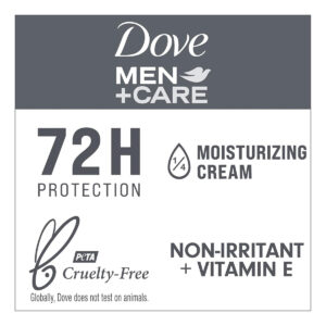 Desodorante antitranspirante Dove Men+Care 48 horas de proteção contra suor e odor O antitranspirante Clean Comfort para homens formulado com vitamina E e hidratante de tripla ação, pacote de 2,7 onças com 3 – O desodorante antitranspirante Dove Men+Care Clean Comfort é resistente ao suor, não à pele com uma fórmula aprimorada com vitamina E e hidratante de tripla ação – Este antitranspirante para homens oferece suor e odor poderosos de 48 horas proteção — Projetado com hidratante de ação tripla, nosso antitranspirante para homens ajuda a reter a umidade da pele e a proteger contra irritações, proporcionando maior conforto axilas – O desodorante antitranspirante Dove Men+Care Clean Comfort apresenta uma fragrância macia de linho para manter você se sentindo fresca e confiante – Aplique este desodorante antitranspirante em bastão suavemente para acalmar e proteger suas axilas e garantir uma confiança duradoura 24 horas por dia – O desodorante antitranspirante Dove Men+Care é livre de crueldade. Globalmente, a Dove não testa em animais