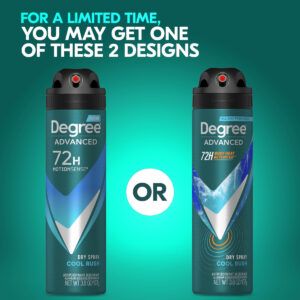 Desodorante antitranspirante Degree Men em spray seco Cool Rush 12 unidades. 72 horas de proteção contra suor e odor para homens com tecnologia ativada pelo calor corporal de 3,8 onças a 72 horas. Proteção ininterrupta: o spray seco desodorante antitranspirante Degree Men Cool Rush seca instantaneamente com 72 horas de proteção contra suor e odor para uma confiança ininterrupta. – TECNOLOGIA ATIVADA PELO CALOR CORPORAL: Nossa inovadora tecnologia MotionSense funciona em sincronia com seu corpo o dia todo. Este desodorante para homens libera uma explosão sutil de fragrância toda vez que você se move. – Seca instantaneamente: o spray seco desodorante antitranspirante Degree Men seca instantaneamente, para que você possa tomar durante o dia. Basta agitar, pulverizar e mover. Testado por dermatologistas e sem álcool. – FRESCOR IMPARÁVEL: mantenha-se fresco por mais tempo com este desodorante antitranspirante para homens. O desodorante antitranspirante Degree Men Cool Rush apresenta um aroma limpo e refrescante para manter você energizado. – RECICLE COM GRAU: Além de aumentar o uso de materiais reutilizáveis, estamos facilitando a reciclagem de nossas embalagens de antitranspirante e spray seco. – ULTRAPASSE SEUS LIMITES: Na Degree, queremos inspirar a confiança de todos para que avancem mais e avancem. Estamos aqui para apoiar sua jornada com um desodorante antitranspirante que acompanha você.