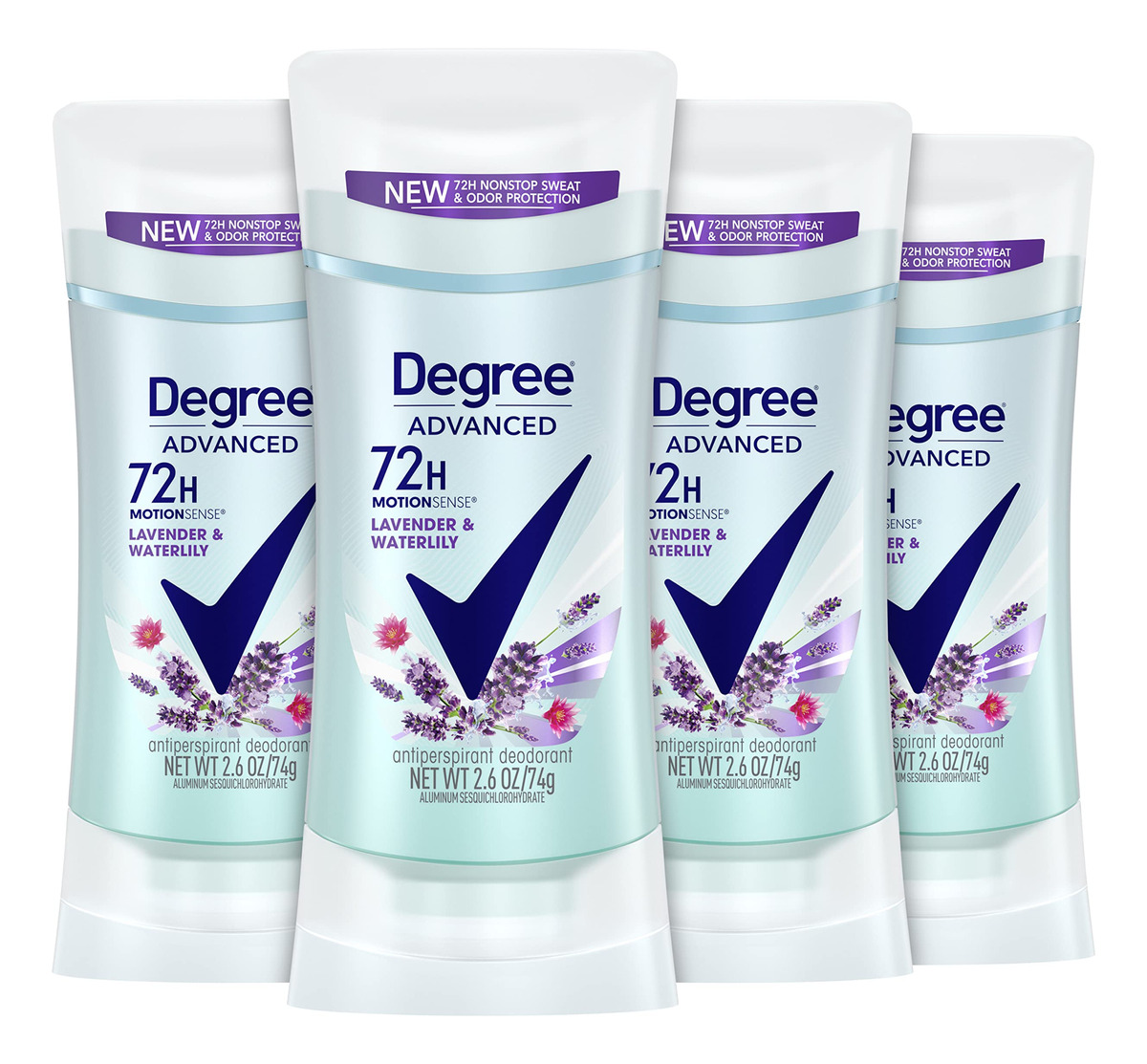 Desodorante antitranspirante Degree 72 horas de proteção contra suor e odor Antitranspirante de lavanda e nenúfar para mulheres com tecnologia MotionSense 2,6 onças e 4 unidades — FRESCOR ININTERRUPTO: O desodorante antitranspirante Degree Advanced de lavanda e nenúfar faz com que você se sinta fresca e limpa com 72 horas de proteção contra suor e odor – VOCÊ SE MOVE, FUNCIONA: nossa inovadora tecnologia MotionSense funciona em sincronia com seu corpo, tudo um dia inteiro. Este desodorante antitranspirante para mulheres libera uma explosão de fragrância toda vez que você se move – PERFUME CALMANTE: Este antitranspirante para mulheres apresenta o aroma suave e floral de lavanda e nenúfar. NO ENTANTO, VOCÊ SE MOVE: Continue se movendo com este desodorante antitranspirante. Basta girar, deslizar e mover com confiança – RECICLE COM GRAU: Além de aumentar o uso de materiais reutilizáveis, estamos facilitando a reciclagem de nossas embalagens antitranspirantes e spray seco