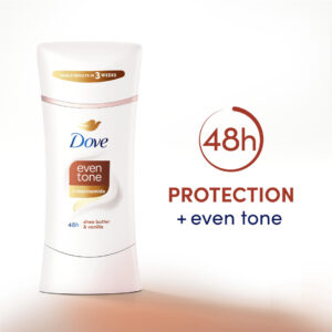 Pacote de 3 desodorantes antitranspirantes Dove Even Tone de manteiga de karité e baunilha para 48 horas de proteção contra odores e suor e restauração da pele, com niacinamida e resultados visíveis em 3 semanas, 2,6 onças – Desodorante antitranspirante 2 em 1: antitranspirante restaurador de tom com proteção contra odor e suor por 48 horas – EVEN TONE: um desodorante antitranspirante que ajuda a restaurar visivelmente a pele tom natural em apenas três semanas – COM INGREDIENTES CUIDADOSOS: uma fórmula restauradora da pele, infundida com niacinamida (vitamina B3) e ingredientes que estimulam a ceramida para axilas mais suaves e um tom de pele mais uniforme – SMOOTH GLIDE: este desodorante antitranspirante desliza suavemente na pele e não deixa resíduos visíveis, então você pode se vestir e ir embora – Um perfume exclusivo: desodorante antitranspirante com aroma reconfortante de manteiga de karité e baunilha