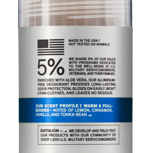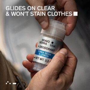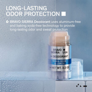 Proteção duradoura contra odores: O desodorante Bravo Sierra usa tecnologia sem alumínio e sem bicarbonato de sódio para fornecer proteção duradoura contra odores e suor, mesmo nas condições mais exigentes. Nosso perfume original é amadeirado com notas de vetiver branco e cedro. Tonka Bean & Lemon tem um aroma quente e encorpado com notas de limão, baunilha, canela e fava tonka. Pacote com 3. – Proteção duradoura contra odores: o desodorante Bravo Sierra usa tecnologia sem alumínio e sem bicarbonato de sódio para fornecer proteção duradoura contra odores e suor, mesmo nas condições mais exigentes. Nosso perfume original é amadeirado com notas de vetiver branco e cedro. Tonka Bean & Lemon tem um aroma quente e encorpado com notas de limão, baunilha, canela e fava tonka. Pacote com 3. – Tecnologia natural de absorção de suor: nossa tecnologia sem alumínio e sem bicarbonato de sódio é formulada com um pó absorvente de suor extraído da raiz da mandioca, nativa do Brasil. – Desliza em roupas transparentes e sem bicarbonato de sódio: aplique na pele limpa. Somente para uso nas axilas. – Ingredientes limpos: não contém alumínio, bicarbonato de sódio, parabenos, silicones, PEGS, ftalatos ou fenoxietanol. Vegano e livre de crueldade. Fabricado nos EUA. – Cuidado corporal testado pelas forças armadas para alto desempenho: a Bravo Sierra é a única empresa de cuidados pessoais construída com e para as forças armadas dos EUA. Cada produto é testado em campo com 2.500 militares dos EUA para atender às necessidades de pessoas com vidas ativas. Do conceito à fabricação, toda a linha é feita com ingredientes limpos e embalagens sustentáveis. 5% de todas as vendas são contribuídas diretamente para os programas de qualidade de vida da MWR para militares ativos, veteranos e suas famílias.