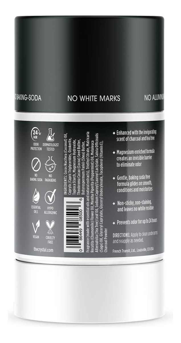 Crystal Magnesium Solid Stick Natural Deodorant, Non-Irritating Aluminum Free Deodorant for Men or Women, Safely and Effectively Fights Odor, Baking Soda Free, Charcoal & Tea Tree, 2.5 oz – Trusted Brand With New Magnesium Innovation: More than 30 years ago, we invented the original mineral salt deodorant. Today, we continue to lead mineral innovation with Magnesium, a naturally occurring element used as an alternative to aluminum, baking soda, and other potentially irritating, ineffective, toxic, or harmful ingredients. Magnesium deodorants also help to create an easy transition from conventional antiperspirant. – Smell Good Naturally: Crystal aluminum-free deodorant for women and men dries quickly and allows the body to function naturally without blocking pores. Its non-irritating, dermatologist-tested to be hypoallergenic, and perfect for all skin types. Available in 5 different scents: Lavender + Rosemary, Coconut + Vanilla, Cucumber + Mint, Sea Salt + Sage, Charcoal + Tea. – Invisible, Non Staining & No Greasy Residue: Crystal magnesium deodorant provides 24-hour odor control without the mess, greasy residue, or white stains on skin and clothes! – Good Vibes Only: Crystal aluminum-free deodorant is vegan, cruelty-free, safe, and effective. We never test our 100% vegan deodorants on animals and use the cleanest, safest ingredients available. You will never find parabens, sulfates, phthalates, artificial fragrances, or colors here! – Crystal Cares: We are committed to the safety, health, and welfare of the people who use our products and the environment. We are proud to sponsor like-minded non-profit organizations like Breast Cancer Prevention Partners and The Gentle Barn to create a better world.