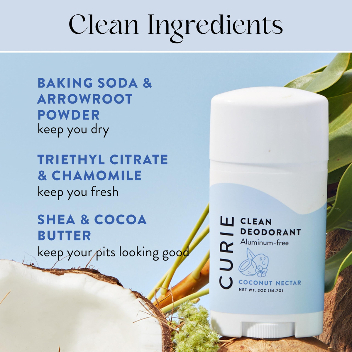 Desodorante Curie sem alumínio – Néctar de coco e palito de chá branco – Desodorante natural, sem parabenos, sem crueldade, não tóxico – Proteção natural contra odores: o desodorante natural e limpo Curie oferece proteção eficaz e duradoura contra odores sem o uso de alumínio, parabenos ou ingredientes tóxicos, tornando-o uma escolha segura e saudável para sua rotina diária. – Suave para a pele: formulado com o mínimo de bicarbonato de sódio, nosso desodorante unissex não é irritante e é adequado para todos os tipos de pele. Ele contém ingredientes que adoram a pele, como óleo de coco, babosa e extrato de pera espinhosa para acalmar e hidratar a pele. – Aromas deliciosos: diga adeus aos aromas genéricos das axilas com a variedade de deliciosos aromas artesanais de Curie. Nossos aromas de chá branco, néroli de laranja, néctar de coco, cassis de toranja e eucalipto de zimbro deixarão você com um cheiro fresco e revigorado durante todo o dia. – Embalagem sustentável: o desodorante Curie vem em embalagens feitas com materiais 100% reciclados pós-consumo, reduzindo o desperdício e promovendo a sustentabilidade. Além disso, é totalmente reciclável depois de usado! – A diferença Curie: Na Curie, acreditamos que cuidar do seu corpo não deve ser um sacrifício. É por isso que desenvolvemos um desodorante natural que realmente funciona. Não acredite apenas na nossa palavra: aparecemos no The New York Times, Glamour, Shape e mergulhamos nossos dedos no Shark Tank!
