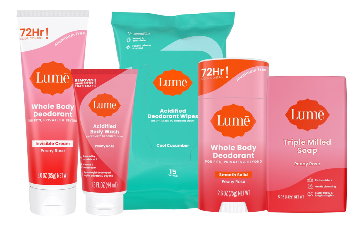 TUDO O QUE VOCÊ PRECISA PARA CHEIRAR MELHOR EM QUALQUER LUGAR — Controle o odor de coxas, partes íntimas e muito mais do que pés, seios, umbigos, dobras abdominais, rachaduras nas nádegas, rugas nas coxas ou em qualquer outro lugar onde você tenha odor, mas gostaria de não sentir. Extremamente eficaz — o desodorante de corpo inteiro Lume, o sabonete líquido acidificado e os toalhetes desodorantes acidificados são todos clinicamente comprovados para controlar o odor. O Starter Pack inclui tudo o que você precisa para cheirar tão bem quanto humanamente possível. ALIMENTADAS PELA CIÊNCIA — Nossas fórmulas têm pH otimizado para controlar o odor em qualquer lugar que você o tenha, mas gostaria de não tê-lo feito. SERIAMENTE SEGURO – Desenvolvido por médicos e seguro para qualquer uso externo. Nosso desodorante, sabonete líquido e lenços umedecidos são todos isentos de alumínio, bicarbonato de sódio e parabenos. Hipoalergênico e seguro para a pele até mesmo nas partes mais sensíveis. Pacote inicial PEONY ROSE — Peony Rose Smooth Solid de 2,6 onças, 3,0 onças de desodorante cremoso invisível e sabonete líquido acidificado de 1,5 onças, além de 15 toalhetes desodorantes acidificados em pepino frio. – TUDO O QUE VOCÊ PRECISA PARA CHEIRAR MELHOR EM QUALQUER LUGAR — Controle de odores em coxas, partes íntimas e muito mais: pés, axilas, umbigos, dobras abdominais, rachaduras na bunda e coxas rugas ou em qualquer outro lugar onde você tenha odor, mas gostaria de não ter. – Extremamente eficaz – O desodorante corporal Lume, o sabonete líquido acidificado e os toalhetes desodorantes acidificados estão clinicamente comprovados para controlar o odor. O Starter Pack inclui tudo o que você precisa para cheirar tão bem quanto humanamente possível. – ALIMENTADO PELA CIÊNCIA – Nossas fórmulas têm pH otimizado para controlar o odor em qualquer lugar que você o tenha, mas gostaria de não tê-lo. – SERIAMENTE SEGURO – Desenvolvido por médicos e seguras para qualquer uso externo. Nosso desodorante, sabonete líquido e lenços umedecidos são todos isentos de alumínio, bicarbonato de sódio e parabenos. Hipoalergênico e seguro para a pele até mesmo nas partes mais sensíveis. – Pacote inicial de peônia rosa – peônia rosa suave de 2,6 onças, desodorante em tubo de creme invisível de 3,0 onças e sabonete líquido acidificado de 1,5 onças, além de 15 toalhetes desodorantes acidificados em pepino fresco.