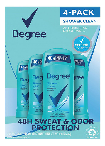 Shower Clean: O desodorante Degree oferece um aroma refrescante de Shower Clean, fornecendo uma fragrância limpa e revigorante que dura o dia todo. Proteção de 48 horas