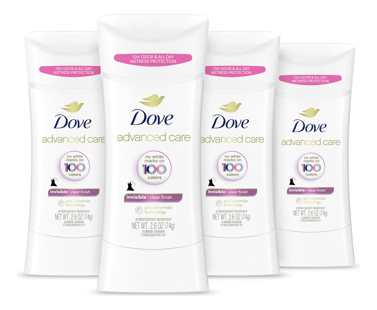 Desodorante antitranspirante Dove Advanced Care Stick Clear Finish Desodorante de 4 unidades que não mancha as roupas Controle de odores por 72 horas e proteção contra o suor durante todo o dia com a tecnologia Pro-Ceramide 2,6 onças – CUIDA E PROTEGE: desodorante antitranspirante Dove Advanced Care Invisible Care Invisible Care para uma pele lindamente macia e resiliente – Proteção duradoura: desodorante antitranspirante com controle de odor e 72 horas proteção contra suor durante todo o dia – ANTITRANSPIRANTE ANTIMANCHAS: desodorante antitranspirante invisível testado em 100 cores – FÓRMULA DE CUIDADO: formulado com pró-ceramida Tecnologia para ajudar a reparar a barreira cutânea após o barbear – FRESH FRAGRANCE: desodorante antitranspirante com aroma cintilante de abacaxi, pera e rosa