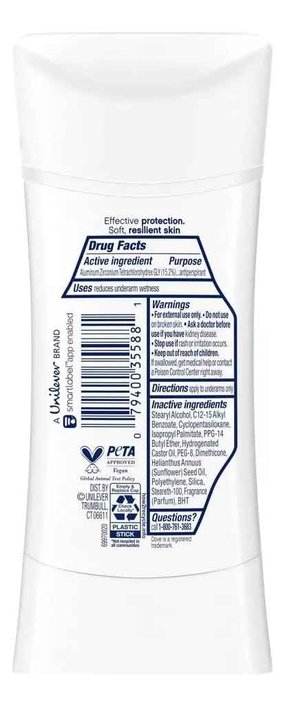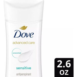 Desodorante Dove em bastão sensível antitranspirante de 2,6 onças, pacote com 3, sem perfume – 3 peças – 2,6 onças (76 ml) – Reduz a umidade nas axilas, – Dura até 48 horas, – Nutrium Moisture