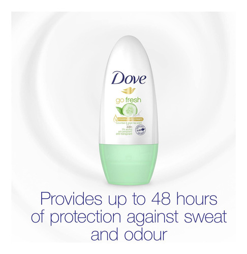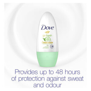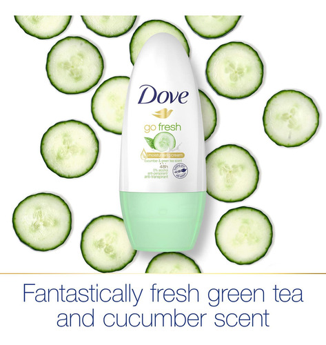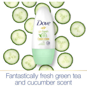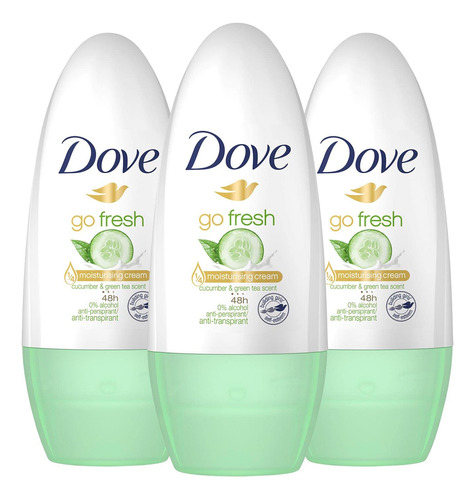 Desodorante antitranspirante Dove Go Fresh Cucumber Roll-On 50 ml – Pacote com 3 – Desodorante: contém 50 ml de aroma de pepino fresco – Antitranspirante: ajuda a controlar o suor e o odor – Roll-On: fácil de aplicar com um aplicador suave e deslizante – Para mulheres: formulado para uma sensação leve e limpa – Marca Dove: marca confiável de cuidados com a pele sensível