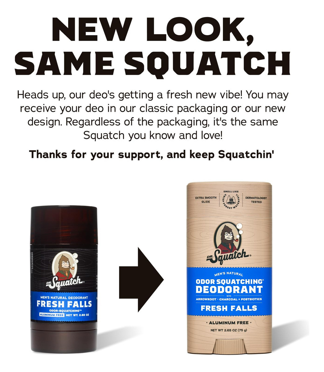 O desodorante natural sem alumínio Dr. Squatch é feito apenas com os melhores ingredientes que a Mãe Natureza tem a oferecer para uma proteção poderosa e frescor e confiança durante todo o dia. Nunca usamos produtos químicos ou sintéticos agressivos, como parabenos, ftalatos ou silicones, e nossas fragrâncias são de origem natural. Experimente todos os aromas naturais masculinos do Dr., incluindo Pine Tar, Fresh Falls, Birchwood Breeze, Bay Rum, Alpine Sage, Coconut Castaway e Wood Barrel Bourbon. – DÊ A BOTA – Com um pacote de 3 da poderosa proteção natural de nossa fórmula Odor-SquatchingTM e um aroma fresco e amadeirado que é tão nítido quanto o som das folhas se triturando sob os pés uma caminhada noturna. – ATAQUE O CHEIRO NA FONTE – Com ingredientes naturais como pó de araruta, carvão vegetal e pós-bióticos para uma proteção natural poderosa. – SEM INGREDIENTES NOCIVOS – Nossos produtos são 98 a 100% naturais em origem e nunca usamos produtos químicos agressivos que são brutais em sua pele. Feito com fragrâncias de origem natural – a natureza tem um cheiro incrível, você também deveria. É por isso que usamos apenas aromas de origem natural e evitamos fragrâncias que cheiram a um vestiário do ensino médio. – NOTAS DO DOCUMENTO – Passe esses caroços 3-4 vezes após o banho para ter frescor e confiança durante todo o dia. – FORMULADO PARA HOMENS – Você tem necessidades e nós temos os produtos. Desenvolvemos nossos produtos naturais de alto desempenho especificamente para as necessidades dos homens.
