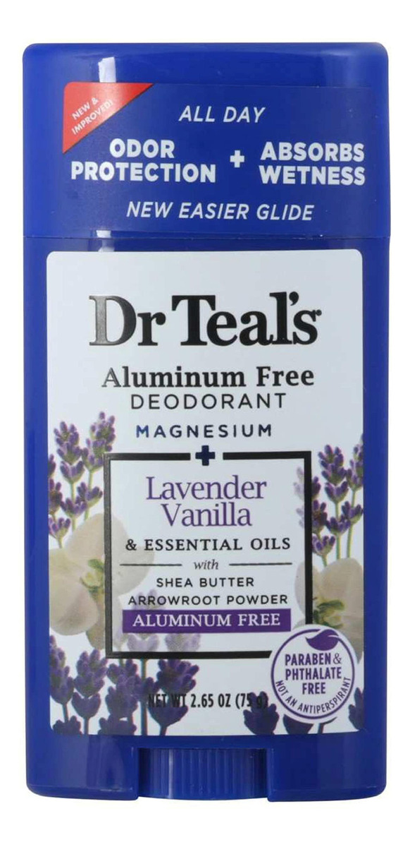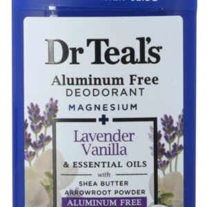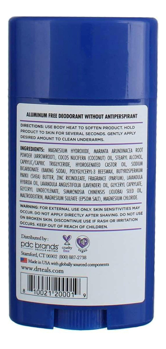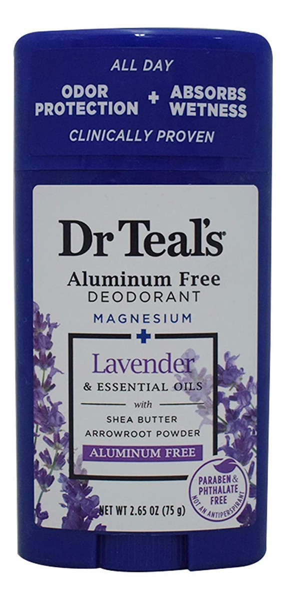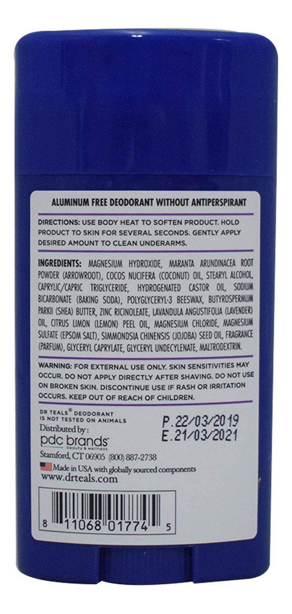 Desodorante Dr Teal's sem alumínio — Lavanda — Sem parabenos e ftalatos — 2,65 onças — Clinicamente comprovado que absorve a umidade e combate o odor durante todo o dia. Testado dermatologicamente — Desodorante sem alumínio e sem antitranspirante — Magnésio com pó de araruta, bicarbonato de sódio e uma mistura de óleos essenciais e hidratantes para desodorizar e absorver a umidade — Livre de glúten, parabenos, ftalatos — Adequado para veganos e livre de crueldade