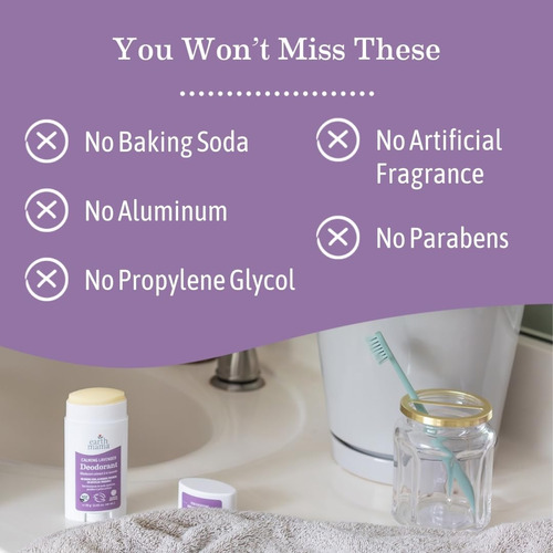 O desodorante calmante de lavanda Earth Mamas é um desodorante seguro e totalmente natural, livre de alumínio, propilenoglicol, fragrâncias artificiais, parabenos e bicarbonato de sódio potencialmente irritante. Embalado em recipientes Eco Smart que começam a se degradar em dias, não décadas, este desodorante limpo orgânico de lavanda, calêndula e óleo de coco é formulado para todos, especialmente aqueles com pele sensível, adolescentes e mulheres grávidas e amamentando. Sobre a Earth Mama: A Earth Mama fabrica produtos fitoterápicos obsessivamente limpos para todos e suas mães. Fundados em 2002 por uma enfermeira e fitoterapeuta, os produtos Earth Mamas são formulados com ingredientes orgânicos eficazes e são seguros para todos e suas famílias, incluindo mulheres grávidas e lactantes. Com a confiança de mães em todo o mundo, Earth Mama combina gerações de sabedoria feminina, remédios fitoterápicos tradicionais e pesquisas baseadas em evidências para formular chás de ervas orgânicos certificados, sabonetes à base de castela, bálsamos, loções, desodorantes, protetor solar e muito mais. – SEGURO E EFICAZ: este desodorante sem alumínio é feito para todos, adolescentes, mulheres grávidas e lactantes e especialmente qualquer pessoa com pele sensível. Disponível em Bright Citrus, Ginger Fresh, Calming Lavanda e Simply Non-Sents. – SEM SUBSTÂNCIAS QUÍMICAS PREOCUPANTES: O desodorante Earth Mama contém óleo orgânico de lavanda, calêndula e coco e é livre de alumínio, propilenoglicol, fragrâncias artificiais ou parabenos, além de bicarbonato de sódio potencialmente irritante. – EMBALAGEM ECO SMART: Este desodorante orgânico usa recipientes Eco Smart feitos com tecnologia inovadora para aumente a decomposição após ser descartado adequadamente em aterros sanitários. – CONFIADO POR MAMAS WORLDWIDE: Formulado com produtos orgânicos eficazes ingredientes que apoiam famílias com segurança, incluindo mulheres grávidas e lactantes e seus bebês, os produtos Earth Mama são seguros para todos e para suas mães. – COMO USAR: Este desodorante totalmente natural é melhor aplicado em temperatura ambiente nas axilas limpas e secas.