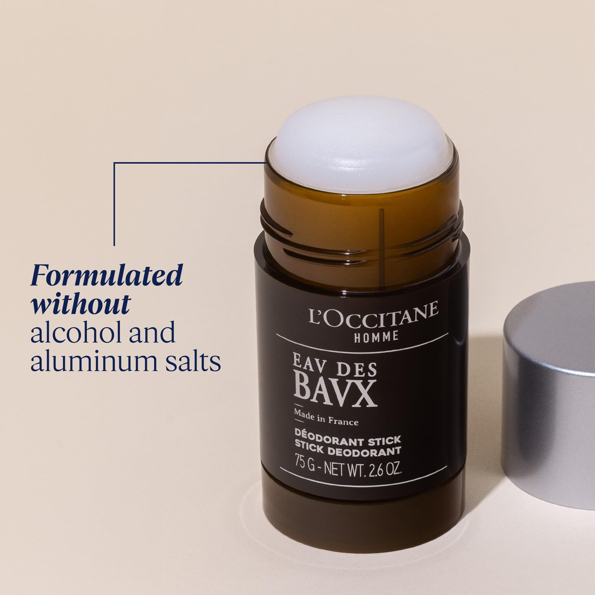 Desodorante L'OCCITANE Eau des Baux Stick, 2,6 onças: sem álcool, seca rapidamente, aroma fresco de cipreste, ajuda a prevenir odores — ajudando a evitar odores corporais