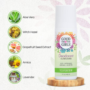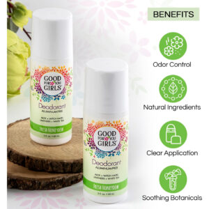 Você tem uma garota fedorenta, adolescente ou adolescente? O desodorante Good For You Girls ajudará a mantê-la fresca sem expô-la ao alumínio, talco ou outros ingredientes nocivos. Nosso desodorante usa ingredientes naturais à base de plantas, incluindo tecnologia probiótica que decompõe os compostos causadores de odor. Nossa fórmula roll-on permanece transparente, sem nenhum caroço feio sob as axilas ou nas roupas. É suave para a pele porque também contém ingredientes que acalmam a pele e reduzem a vermelhidão. – EFICAZ CONTRA O ODOR – Nosso desodorante usa dois tipos de tecnologia probiótica que decompõe eficazmente as bactérias causadoras de odor. Rico em minerais essenciais, aminoácidos, beta-glucano e vitaminas, esses ingredientes especiais também têm propriedades antimicrobianas e anti-inflamatórias – INGREDIENTES SEGUROS E À BASE DE PLANTAS – Nossa fórmula de desodorante natural é totalmente isenta de alumínio, parabenos, ftalatos, PEGs e corantes sintéticos. Em vez disso, nosso desodorante é repleto de vitaminas saudáveis para a pele e ingredientes orgânicos que acalmam e nutrem até mesmo a pele mais sensível – INVISIBLE ROLL ON – Ao contrário dos desodorantes sólidos feitos com bicarbonato de sódio ou dos desodorantes líquidos feitos com argila, nosso desodorante não obstrui os poros, se aglomera ou deixa marcas brancas feias na pele ou nas roupas. Quando usado em axilas limpas e secas após o banho, nosso desodorante oferece proteção discreta contra odores. Também pode ser usado em pés fedidos! – O COMPROVADO E PREMIADO Good For You Girls foi reconhecido pela The Campaign for Safe Cosmetics, Natural Ingredient Truth in Labeling, Environmental Working Group, Natural Products Association e foi certificado como livre de crueldade pela Leaping Bunny. Good For You Girls recebeu prêmios da Allure Magazine, da Natural Solutions Magazine, da Parent Tested-Parent Approved e da Creative Child Magazine.