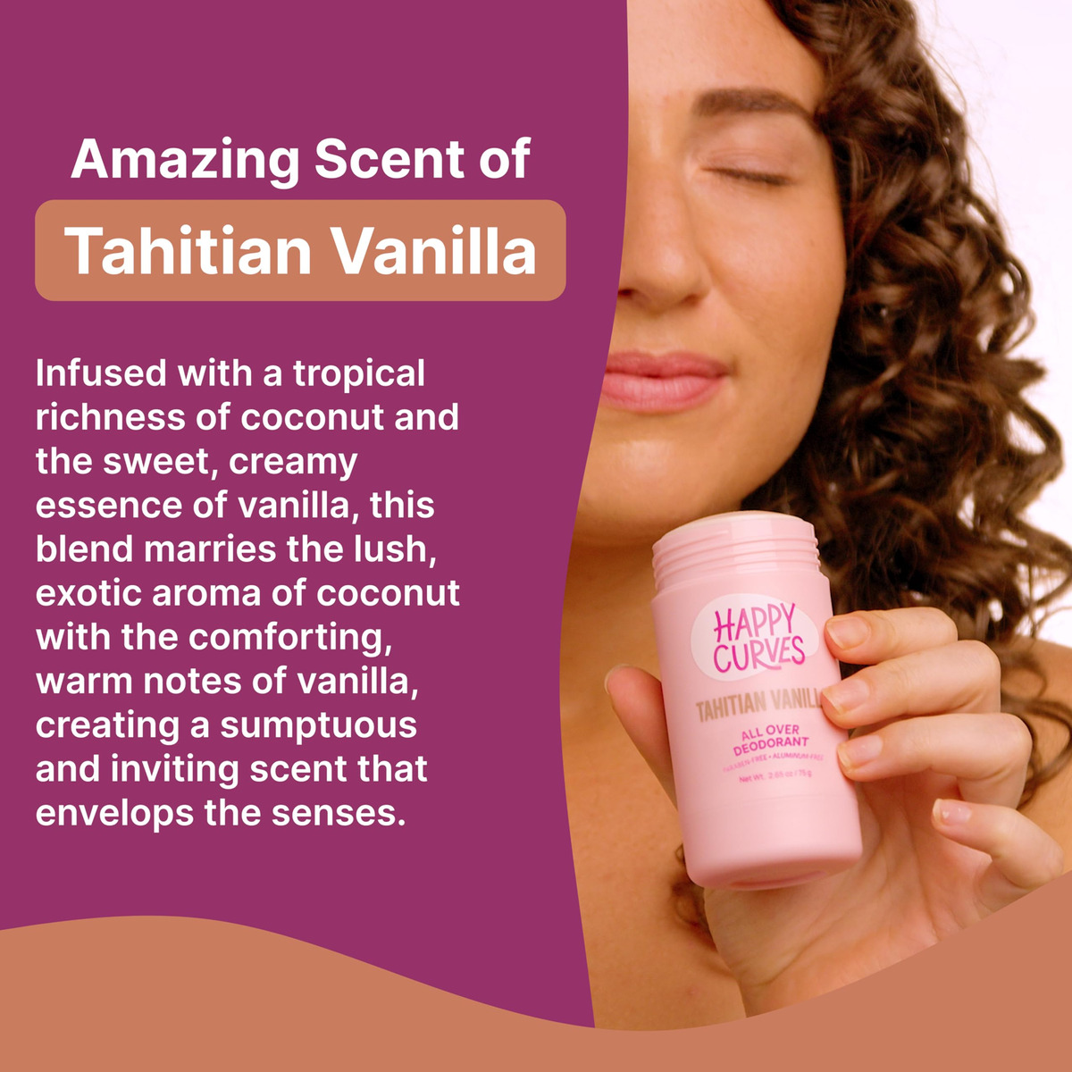 Experimente a sensação de frescor e limpeza do HAPPY CURVES, o desodorante mais bem avaliado para mulheres. Nosso desodorante natural é especialmente formulado para o conforto e o estilo de vida ativo das mulheres, garantindo que você se sinta confiante e sem odores durante todo o dia. Além de ser um desodorante corporal para mulheres, também é um desodorante corporal completo, oferecendo proteção sempre que você precisar. Seja embaixo dos seios ou nas partes íntimas, nosso desodorante tem o que você precisa. Nosso desodorante corporal integral para mulheres não contém alumínio, o que o torna uma escolha segura para quem prefere produtos naturais. Também é perfeito para peles sensíveis, fornecendo uma solução suave e eficaz para o odor corporal. Este desodorante para todo o corpo não é apenas duradouro, mas também oferece uma forte proteção contra a transpiração intensa. Das axilas às áreas íntimas, nosso desodorante oferece cobertura corporal total. Sem necessidade de produtos separados, como desodorante para mulheres ou desodorante para partes íntimas femininas, o HAPPY CURVES tem de tudo. – PERFUME INCRÍVEL DE BAUNILHA TAITIANA – Infundida com uma riqueza tropical de coco e a essência doce e cremosa da baunilha, essa mistura combina o aroma exuberante e exótico do coco com as notas quentes e reconfortantes da baunilha, criando um aroma suntuoso e convidativo que envolve supera os sentidos. – Desodorante corporal completo – Este desodorante de corpo inteiro com pH balanceado para mulheres foi projetado para manter você fresca da cabeça aos pés, fornecendo um odor eficaz proteção para todas as partes do corpo, incluindo áreas privadas e debaixo dos seios. – INGREDIENTES LIMPOS – Feito com ingredientes limpos, este desodorante é livre de crueldade e ecológico. É o melhor desodorante para mulheres que se preocupam com a saúde e o meio ambiente. Não é apenas um desodorante, é uma escolha mais saudável para seu corpo, especialmente para áreas íntimas e sensíveis. – SEM ALUMÍNIO – Nosso desodorante para mulheres não contém alumínio, garantindo uma opção segura e saudável para manter você fresca e seca o dia todo. Adote uma alternativa suave com nosso desodorante para todo o corpo. – FRESCOR DURADOURO – Este desodorante para mulheres é transparente e oferece uma camada invisível de proteção duradoura contra o odor corporal, mantendo você fresca e confiante durante todo o dia. É o melhor desodorante para um forte odor corporal.