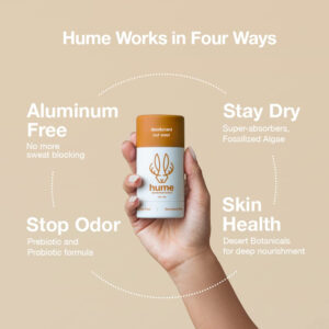 Hume Supernatural cria desodorantes eficazes e limpos com o pensamento científico mais recente. Percebemos que o desodorante limpo ERA REALMENTE UMA PORCARIA e começamos a trabalhar. O resultado? Um desodorante à base de plantas, minerais e probióticos. 100% de desempenho. Limpo. O Hume é uma alternativa ao antitranspirante que realmente funciona. Hume Supernatural o manterá seco, sem manchas e com cheiro de sol. Nossa equipe cofundadora traz anos de experiência em cuidados com a pele e microbiomas para criar a fórmula inovadora da Hume. Nossos ativos à base de plantas funcionam de 4 maneiras: absorver a umidade, reter e reter o odor, apoiar o microbioma da pele e proteger e nutrir a pele. Usamos plantas do deserto, conhecidas por sobreviver até mesmo nos ambientes mais hostis, incluindo pera espinhosa, babosa, flor de cacto e agave azul. Em seguida, alguns dos superabsorvedores mais eficazes da natureza com estruturas microporosas, incluindo algas fossilizadas, caulim e amido de tapioca. Nossas misturas de prebióticos e probióticos são projetadas para ajudar os mocinhos a prosperar. Ingrediente limpo, resultados sobrenaturais. Sem alumínio. Sem ftalatos, sem parabenos. Sem triclosan. Sem glúten. – Sem alumínio: prepare-se para cuidar de suas covas. Nossa fórmula inovadora sem alumínio elimina o odor corporal e deixa você cheirando como o aroma sedutor do tabaco amaciado e esfumaçado, do couro elegante e do calor da madeira de cedro. – SEM ESTRESSE: diga adeus aos caroços úmidos, listras brancas e manchas na camisa que você acabou de vestir. O Hume é um bastão transparente feito para uma aplicação limpa e suave. Sinta-se confiante o dia todo com axilas secas, limpas e inodoras. – 100% de desempenho: nossa fórmula à base de plantas funciona de 4 maneiras para impedir que o odor apareça. O Hume Supernatural absorve a umidade com os superabsorvedores da natureza, prendendo e retendo o odor antes que ele se forme. Ele protege e nutre a pele usando prebióticos e probióticos para apoiar o microbioma da pele. – LIMPA: Melhor por natureza, melhor para você. Nossas fórmulas à base de plantas e minerais são seguras para todos os tipos de pele, livres de crueldade e limpas. Diga não aos ingredientes que obstruem os poros – Nossos ingredientes não contêm alumínio, ftalatos, parabenos, triclosan, bicarbonato de sódio e glúten. – TESTADO POR DERMATOLOGISTAS: Nossa fórmula rica em probióticos é comprovadamente livre de alérgenos e não irritante para todos os tipos de pele. Cada desodorante é aprovado pelo microbioma e está repleto de plantas conhecidas por prosperar nos ambientes mais adversos, incluindo coco, pera espinhosa, flor de cacto e babosa. Juntas, essas plantas com a ciência moderna são a melhor equipe de escavação do mercado!