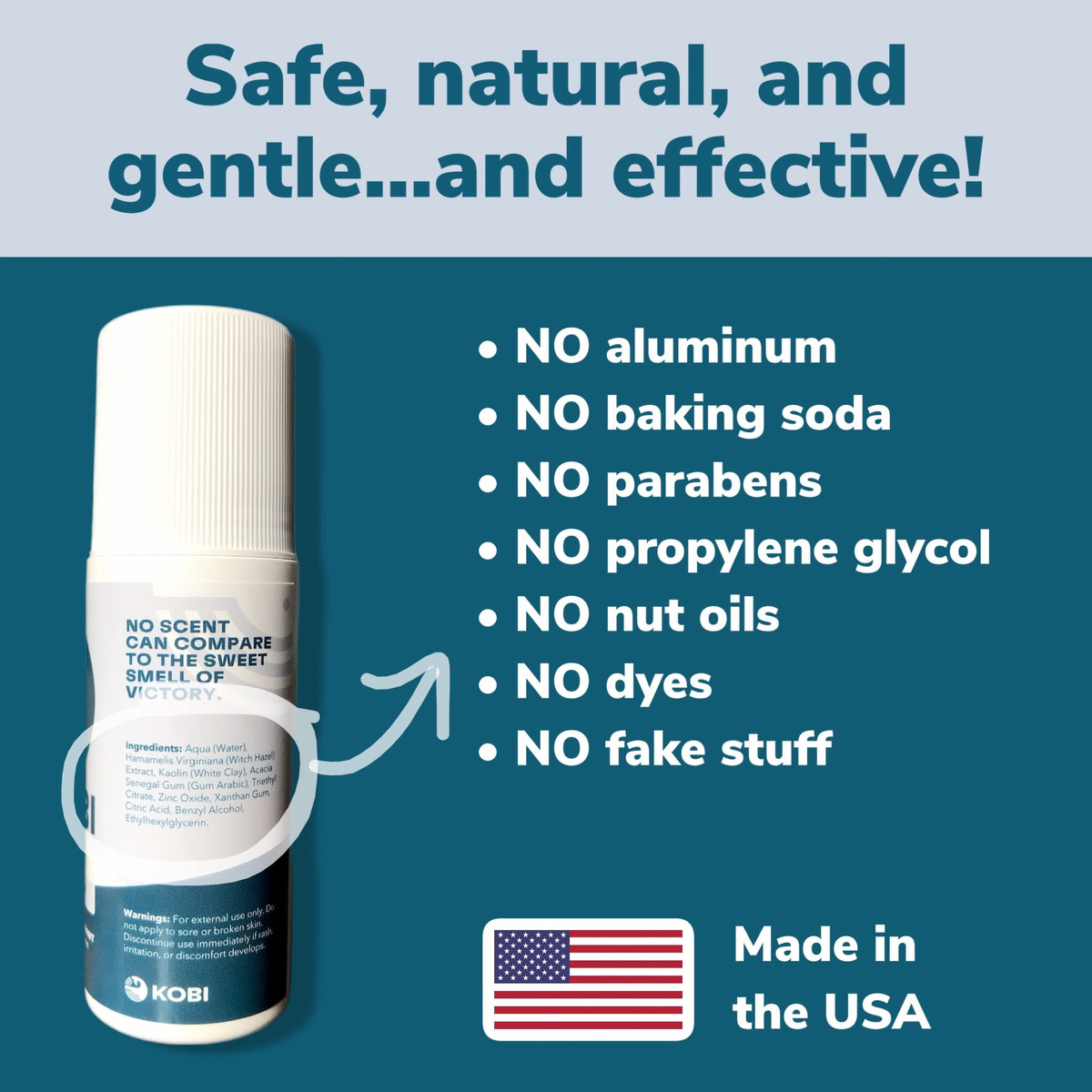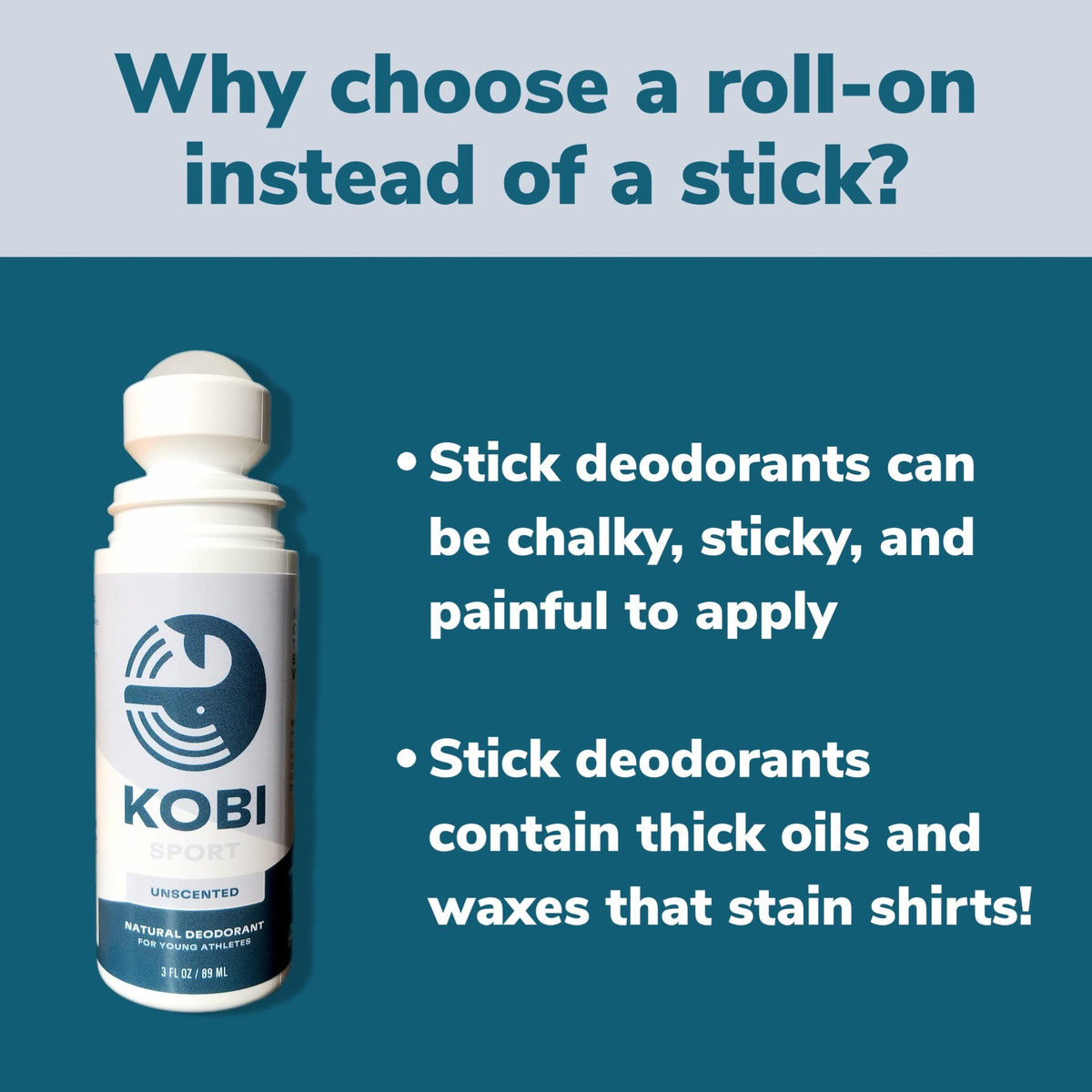 Desodorante natural Kobi para crianças e adolescentes de todas as idades. – Proteção contra odores 24 horas: evita odores durante todo o dia e até reativa e fortalece à medida que seu filho transpira! – SEGURO E ANTI-ALÉRGICO: fórmula natural e não irritante, sem alumínio, sem bicarbonato de sódio, sem fragrância artificial, sem corantes, sem parabenos, sem ftalatos, sem OGM, sem substâncias cancerígenas, sem produtos falsificados. – FICA CLARO: Não há nenhuma substância branca grumosa aqui. O desodorante Kobi Sport é um desodorante suave que permanece transparente sem pingos, viscosidade ou manchas. As covas do seu filho ainda ficarão perfeitas com aquela blusa ou camisa esportiva! – PARA CRIANÇAS DE TODAS AS IDADES: Se você tem um garoto de 14 anos em uma liga competitiva ou um garoto de 6 anos correndo pelo quintal, o desodorante Kobi Sport funcionará para eles. É suave para a pele, mas sempre resistente ao B.O. — FEITO NOS EUA: O desodorante Kobi Sport é fabricado em pequenos lotes em nossas instalações em Chicago. Também é um tamanho generoso – nossa garrafa grande de 3 onças dura pelo menos 2 a 3 meses. Compare esse tamanho com outras marcas! – SUAVE E SEM PERFUME: Nossa versão sem perfume é nossa fórmula mais suave, perfeita para meninos e meninas com pele extremamente sensível (ou apenas um nariz extremamente exigente).