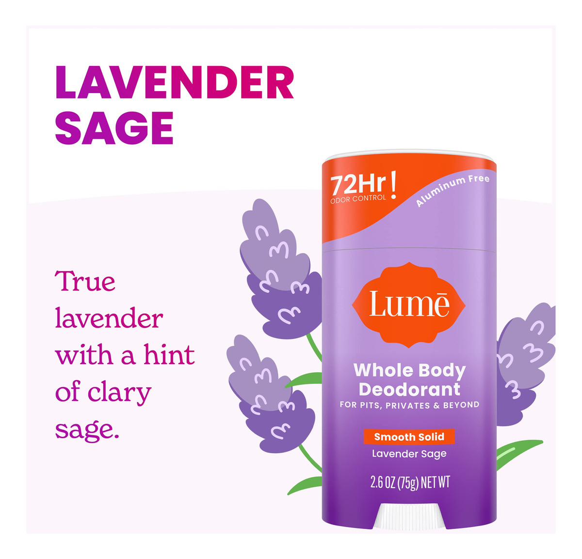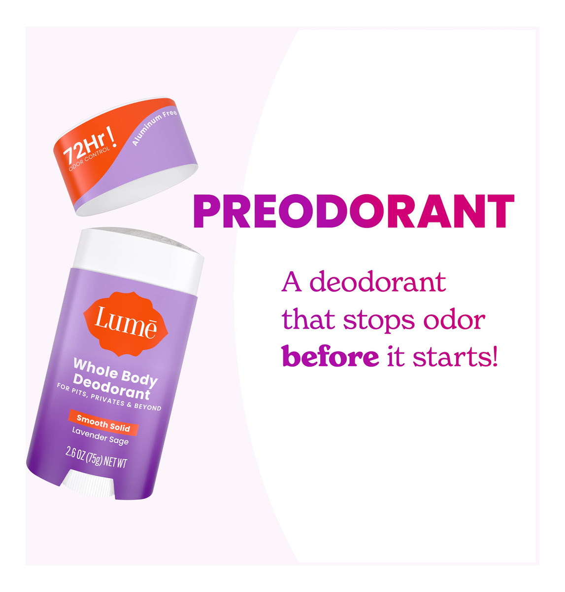 Controle de odor em covas, partes íntimas e muito mais — pense em pés, parte inferior dos seios, umbigos, dobras abdominais, rachaduras nas nádegas, rugas nas coxas ou em qualquer outro lugar em que você tenha odor, mas gostaria de não ter. Está clinicamente comprovado que o lúmen bloqueia o odor corporal durante todo o dia e continua a controlar o odor por 72 horas. Médico desenvolvido para mulheres e seguro para qualquer uso externo. Sem alumínio, sem bicarbonato de sódio e sem parabenos. Hipoalergênico e seguro para a pele até mesmo em nossas partes mais sensíveis. – Cheire melhor em qualquer lugar – Controle de odores em covas, partes íntimas e muito mais do que pés, seios, umbigos, dobras abdominais, rachaduras nas nádegas, rugas nas coxas ou em qualquer outro lugar onde você tenha odor, mas gostaria de não ter. – Extremamente eficaz – Está clinicamente comprovado que o lúmen bloqueia o odor corporal o dia todo e continua controlando o odor por 72 horas. – Extremamente eficaz – Está clinicamente comprovado que o lúmen bloqueia o odor corporal o dia todo e continua controlando o odor por 72 horas. – Alimentado PELA CIÊNCIA — Em vez de encobrir o odor após sua formação, nossa fórmula tem pH otimizado para bloquear o odor antes que ele comece. Você pode até nos chamar de Preodorant! – SERIAMENTE SEGURO – Desenvolvido por médicos e seguro para qualquer uso externo. Sem alumínio, sem bicarbonato de sódio e sem parabenos. Hipoalergênico e seguro para a pele até mesmo em nossas partes mais sensíveis. – LAVANDA SÁLVIA – O perfume exclusivo original de Lumes combina lavanda calmante com um toque de sálvia. É um clássico! Nosso Smooth Solid desliza suavemente em qualquer lugar onde você queira controlar o odor.