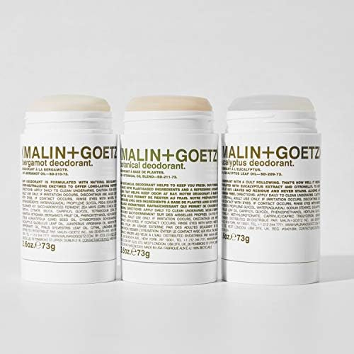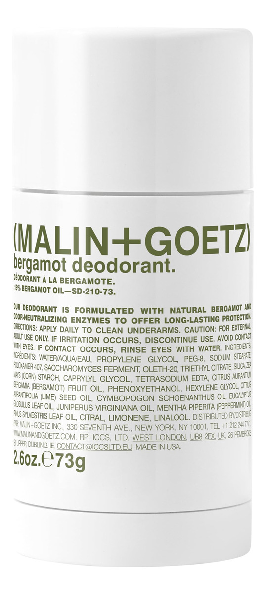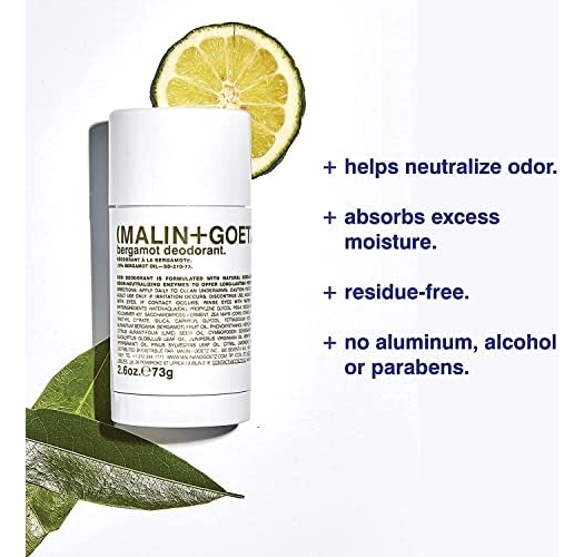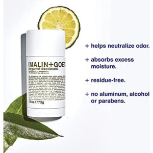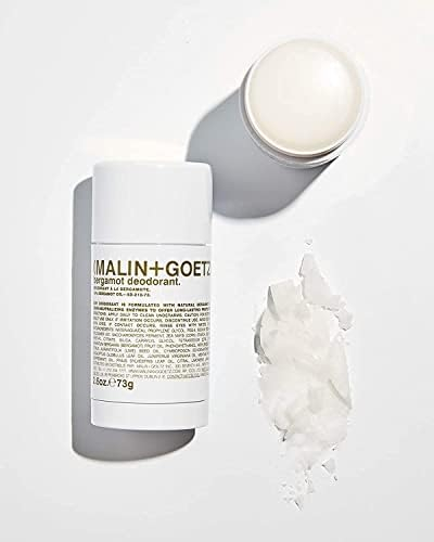 Desodorante de bergamota Malin + Goetz, 2,6 onças — Desodorante em bastão masculino e feminino, desodorante perfumado para todos os tipos de pele, fragrâncias e cores naturais, desodorante natural sem alumínio — refresca as axilas sem usar alumínio, álcool, bicarbonato de sódio, parabenos ou fragrâncias sintéticas. O extrato de bergamota e as enzimas probióticas ajudam a neutralizar o odor, o amido de milho absorve a umidade.