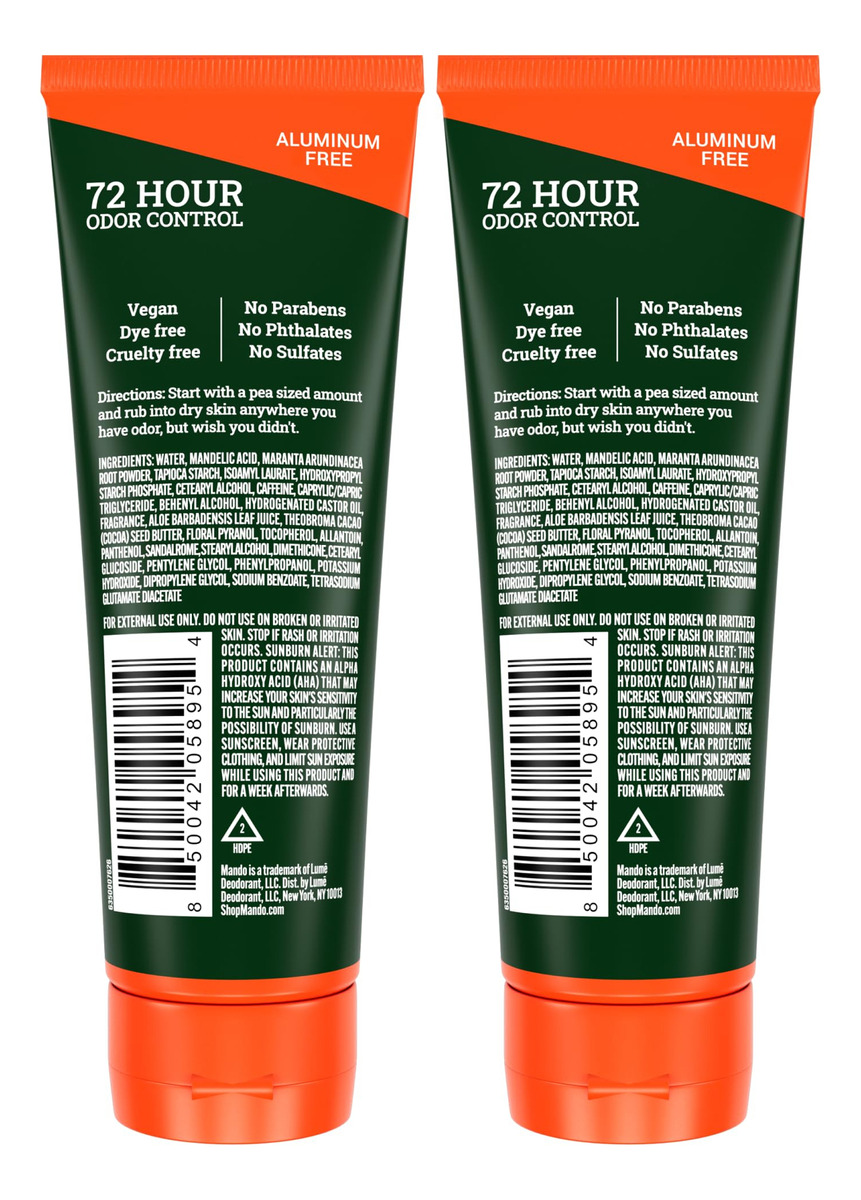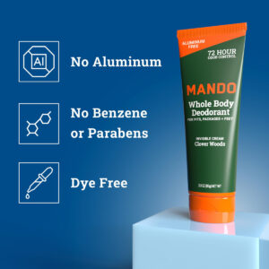 Cheire melhor em qualquer lugar — Controle o odor de covas, embalagens e pés, pense em sacos de bolinhas, rachaduras nas nádegas, rugas nas coxas ou em qualquer outro lugar em que você tenha odor, mas gostaria de não ter. ALTO DESEMPENHO — Está clinicamente comprovado que o Mando bloqueia o odor corporal durante todo o dia e continua a controlar o odor por 72 horas. IMPULSIONADA PELA CIÊNCIA — Em vez de encobrir o odor após sua formação, nossa fórmula tem pH otimizado para bloquear o odor antes que ele comece. Você pode até nos chamar de Preodorant! SERIAMENTE SEGURO – Desenvolvido por médicos e seguro para qualquer uso externo. Formulado sem benzeno. Livre de bicarbonato de sódio de alumínio, corantes azuis ou verdes e parabenos. Hipoalergênico e seguro para a pele até mesmo em nossas partes mais sensíveis. – Cheire melhor em qualquer lugar – Controle de odor em caroços, embalagens e pés. Pense em sacos de bolinhas, rachaduras nas nádegas, rugas nas coxas ou em qualquer outro lugar onde você tenha odor, mas gostaria de não ter. – ALTO DESEMPENHO – Está clinicamente comprovado que o Mando bloqueia o odor corporal o dia todo e continua controlando o odor por 72 horas. – ALIMENTADO PELA CIÊNCIA – Em vez de encobrir o odor após sua formação, nossa fórmula tem pH otimizado para bloquear o odor antes que ele comece. Você pode até nos chamar de Preodorant! – SERIAMENTE SEGURO – Desenvolvido por médicos e seguro para qualquer uso externo. Formulado sem benzeno. Livre de bicarbonato de sódio de alumínio, corantes azuis ou verdes e parabenos. Hipoalergênico e seguro para a pele até mesmo em nossas partes mais sensíveis. – CLOVER WOODS – Uma mistura viva e revigorante de notas amadeiradas caracterizada por um toque nítido e limpo. O creme invisível se esfrega como uma loção. Comece com uma quantidade do tamanho de uma ervilha e aplique em qualquer canto e fenda.