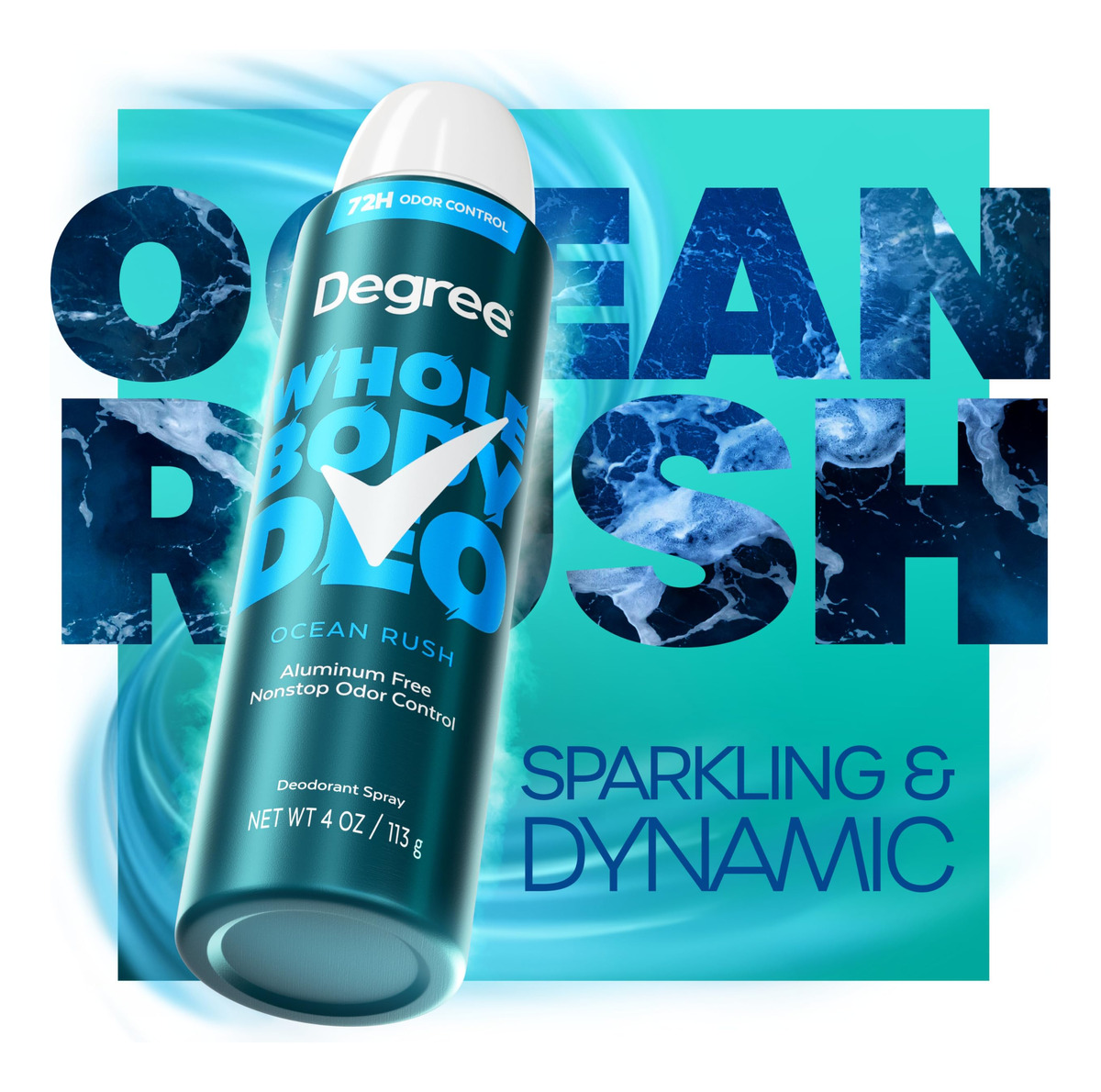 Desodorante de corpo inteiro Degree Men Ocean Rush Spray para homens, sem alumínio, 72 horas, proteção contra odores, 4 onças — USE EM COVAS, PARTES ÍNTIMAS, CORPO E PÉS: use-o em qualquer lugar que você queira combater odores, incluindo covas, partes íntimas, corpo e pés. Sinta-se revigorado e confiante durante todo o dia. – O spray desodorante corporal masculino KEEP FRESH Degree oferece até 72 horas de proteção contra odores sem quebrar sua carteira. – Simples e fácil de aplicar. Segure o spray desodorante a 15 cm de sua pele e borrife onde quiser combater o odor. Evite o rosto. – CHEIRO INCRÍVEL! O desodorante de corpo inteiro Degre's para homens apresenta um aroma fresco com um toque dinâmico e limpo. – Testado dermatologicamente e sem alumínio. – Continua limpo: não deixa resíduos na pele nem marcas brancas nas roupas.