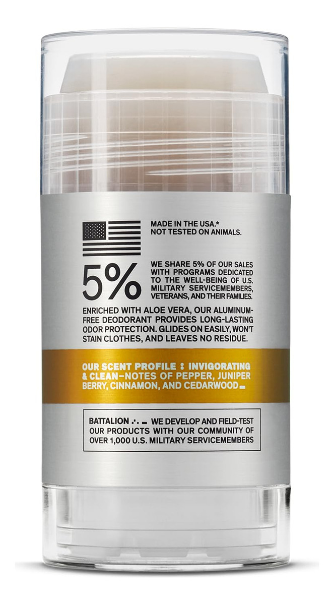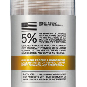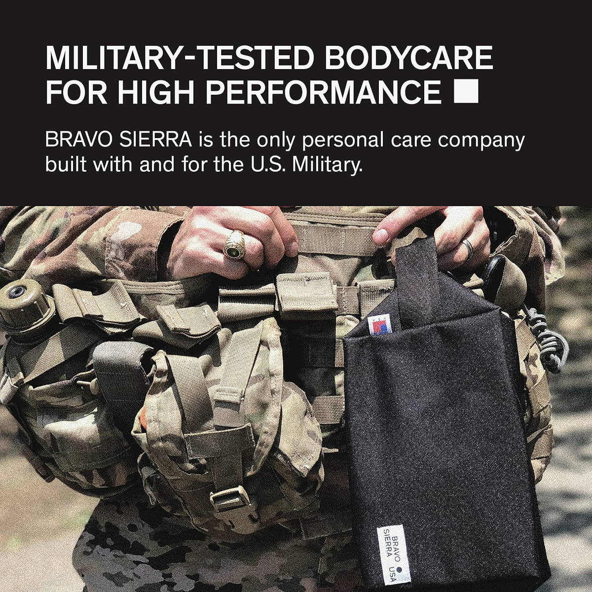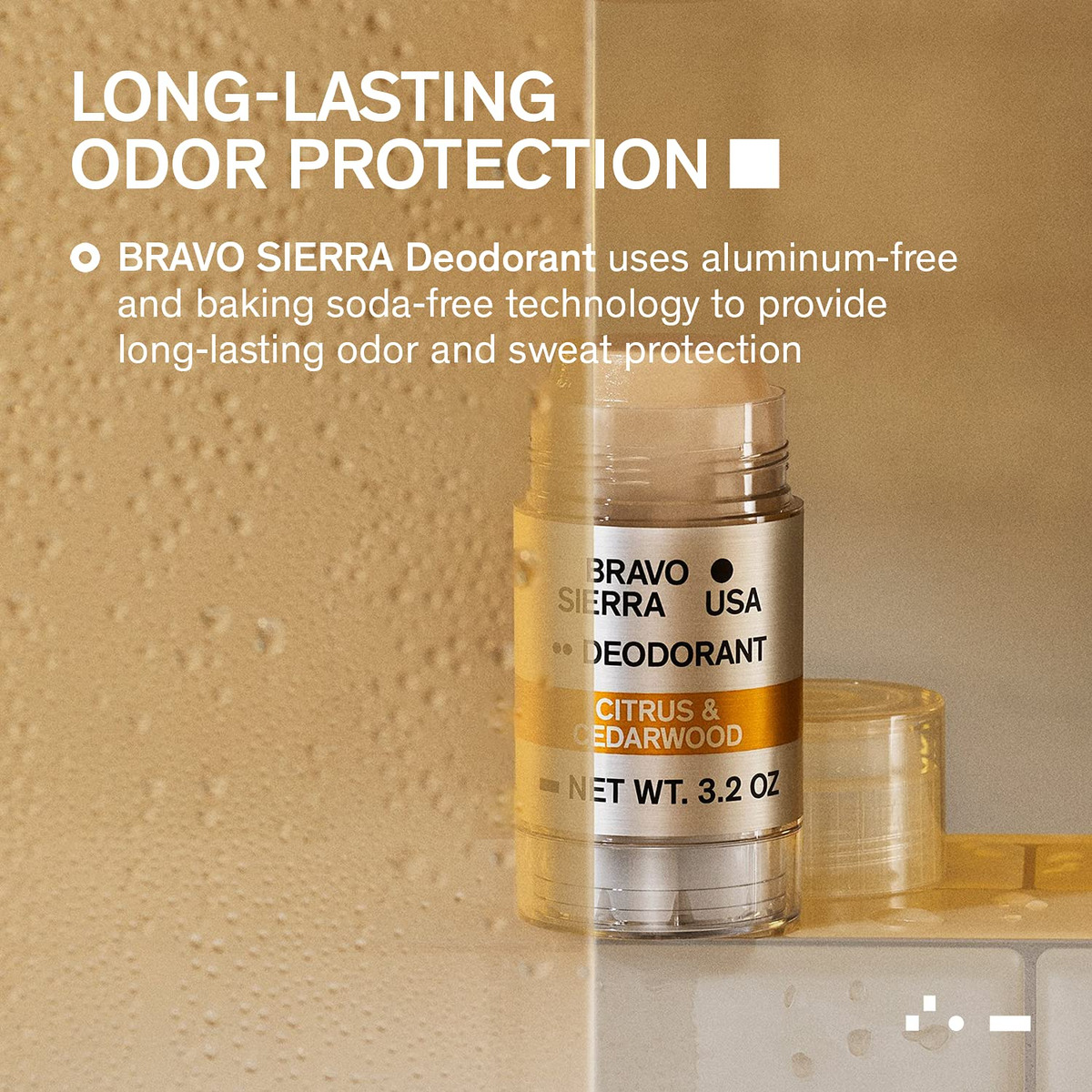 Proteção duradoura contra odores: O desodorante Bravo Sierra usa tecnologia sem alumínio e sem bicarbonato de sódio para fornecer proteção duradoura contra odores e suor, mesmo nas condições mais exigentes. A toranja e almíscar são brilhantes e crocantes, com notas de toranja, tangerina e almíscar. – Proteção duradoura contra odores: o desodorante Bravo Sierra usa tecnologia sem alumínio e sem bicarbonato de sódio para fornecer proteção duradoura contra odores e suor, mesmo nas condições mais exigentes. Toranja e almíscar são brilhantes e crocantes, com notas de toranja, tangerina e almíscar. – Tecnologia natural de absorção de suor: nossa tecnologia sem alumínio e sem bicarbonato de sódio é formulada com um pó absorvente de suor extraído da raiz da mandioca, nativa do Brasil. – Desliza em roupas transparentes e sem manchas: aplique na pele limpa. Somente para uso nas axilas. – Ingredientes limpos: não contém alumínio, bicarbonato de sódio, parabenos, silicones, PEGS, ftalatos ou fenoxietanol. Vegano e livre de crueldade. Fabricado nos EUA. – Cuidado corporal testado pelas forças armadas para alto desempenho: a Bravo Sierra é a única empresa de cuidados pessoais construída com e para as forças armadas dos EUA. Cada produto é testado em campo com 2.500 militares dos EUA para atender às necessidades de pessoas com vidas ativas. Do conceito à fabricação, toda a linha é feita com ingredientes limpos e embalagens sustentáveis. 5% de todas as vendas são contribuídas diretamente para os programas de qualidade de vida da MWR para militares ativos, veteranos e suas famílias.