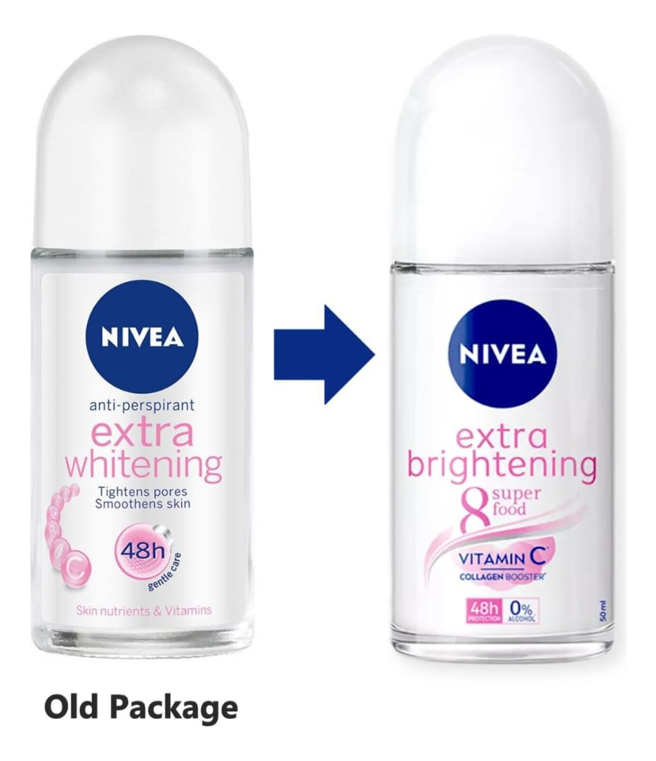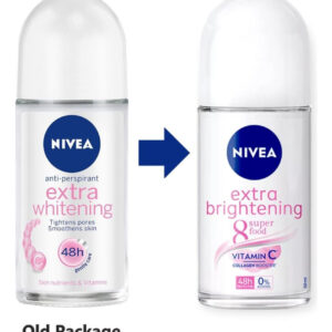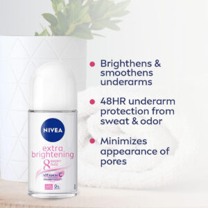Nivea Deodorant Whitening Extra Care 48h Roll-on: 50 ml. – Desodorante antitranspirante Nivea Extra Whitening Pore Minimizer Roll-on – Frasco de 50 ml x 3 – Sem álcool, cor ou conservantes – Poder minimizador de poros duplos – Reduz o escurecimento da pele – Complexo bioativo branco