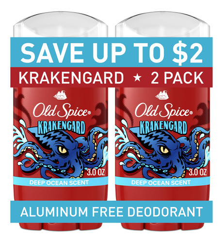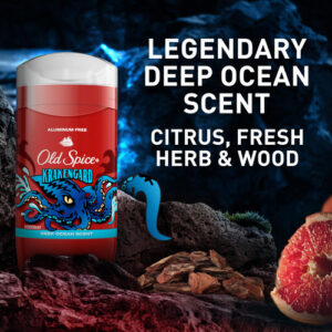 Desodorante masculino sem alumínio Old Spice, proteção contra odores 24 horas por dia, 7 dias por semana, frescor e aroma lendário duradouro, Krakengard com aroma oceânico profundo, 3,0 onças (pacote com 2) – FRESCOR 24 horas por dia, 7 dias por semana: o desodorante Old Spice Wild Collection ajuda a combater o odor nas axilas o dia todo, oferecendo frescor 24 horas por dia, 7 dias por semana, com o uso diário – AJUDA A COMBATER ODORES EM VEZ DE MASCARAR: este lendário desodorante combate o odor nas axilas o dia todo, oferecendo frescor 24 horas por dia, 7 dias por semana, com o uso diário odores na fonte, ajudando você a se manter fresco desde o início, em vez de apenas mascarar odores indesejados. – SEM ALUMÍNIO: este desodorante masculino de deslizamento suave não contém alumínio. – PERFUME DURADOURO 24 HORAS POR DIA, 7 DIAS POR SEMANA: antigo O desodorante perfumado de longa duração da Spice para homens trará um perfume excelente que permanece nas axilas o dia todo. – Fragrância lendária: a coleção Old Spice Wild oferece um perfume lendário 24 horas por dia, 7 dias por semana – O desodorante Krakengard apresenta um aroma de oceano profundo