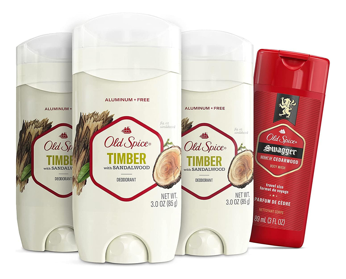 Desodorante masculino Old Spice, madeira sem alumínio com sândalo, pacote de 3 onças com sabonete líquido Swagger para viagem – O desodorante de madeira cheira a sândalo e fava tonka – Três desodorantes sem alumínio incluídos, além de um sabonete líquido Swagger para viagem – Desodorante com proteção duradoura – Proteção tripla: antiodor, continua com um aroma claro e fresco – Cheira fresco, como se tivéssemos pegado sândalo e colocado aqui porque foi isso que fizemos.