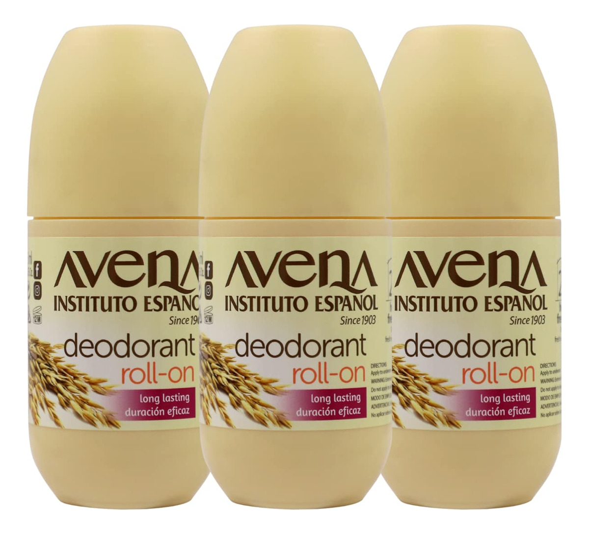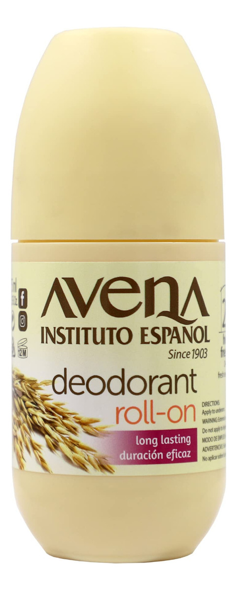 Desodorante Roll-On Avena Instituto Espaol, pacote com 3, 2,5 onças cada, 3 frascos — Nosso produto tem aveia 100% natural como ingrediente principal que o ajudará a absorver as células mortas sem irritar a composição natural da pele. Além disso, suas proteínas respeitam o pH neutro. – O desodorante Avena tem um efeito duradouro. Você se sentirá fresco e confortável sem se preocupar com os maus odores causados pelo suor, 24 horas de sensação de frescor! – Deixe que nosso desodorante, apresentado em um conveniente formato roll-on, ofereça a proteção que você esperava, pois nossa fórmula seca rapidamente sem manchar suas roupas ou deixar resíduos nelas. – A fórmula do desodorante Avena não irrita. Ele proporcionará uma agradável sensação de suavidade que você poderá desfrutar durante todo o dia e uma hidratação superior para evitar o ressecamento na região das axilas. – O Instituto Espaol desenvolveu esta fórmula feita de desodorante à base de aveia. Nosso produto elimina o cheiro terrível sem ressecar as axilas e é adequado para toda a família!