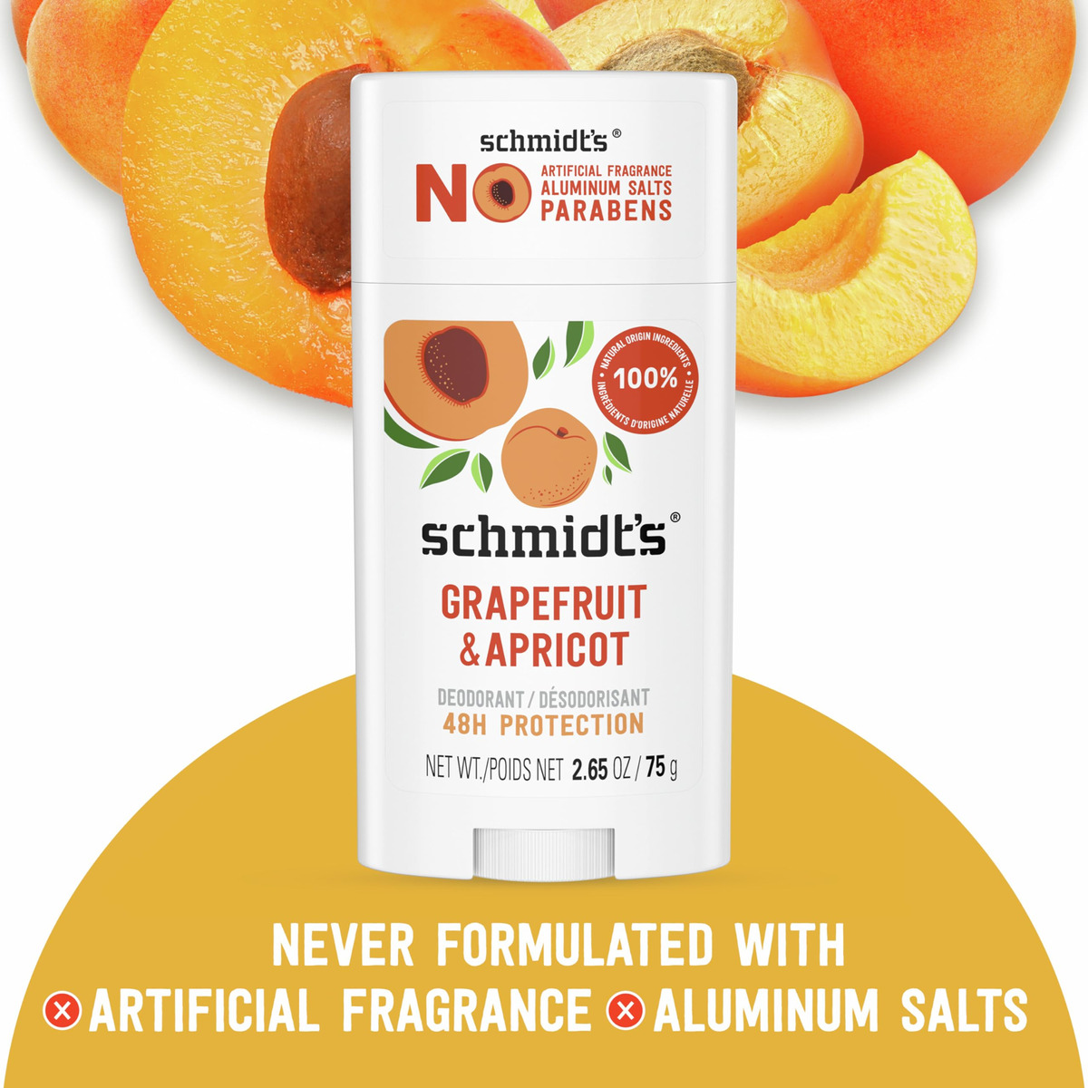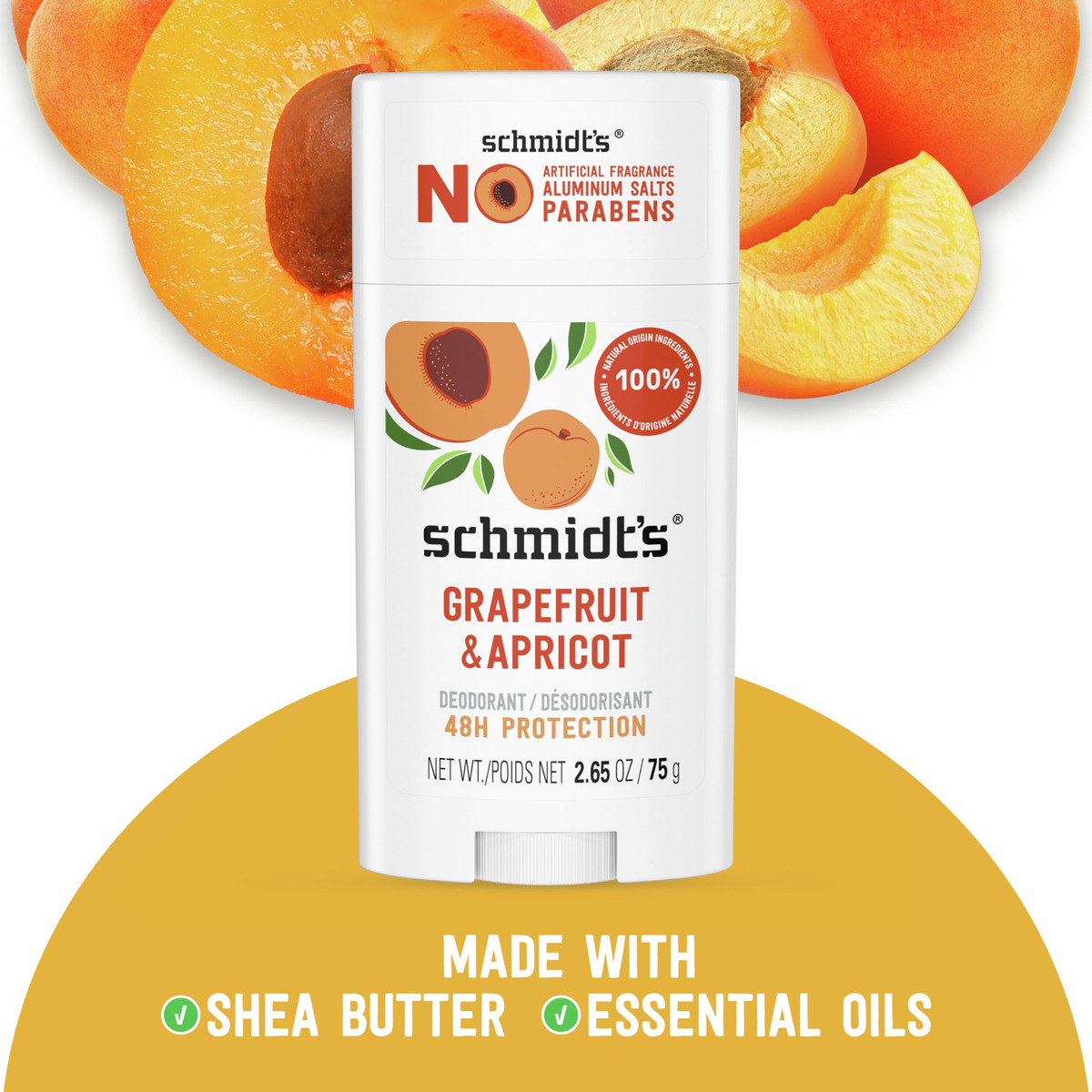 Desodorante vegano sem alumínio Schmidt's, toranja e damasco, com proteção contra odores de 24 horas, 2 unidades para mulheres e homens, ingredientes naturais, isentos de crueldade, 2,65 onças — Really Works Schmidt's Grapefruit & Apricot é uma fragrância inspiradora para mulheres e homens que ajuda a neutralizar o odor e mantém você fresca com proteção contra odores de 24 horas. – Ingredientes certificados de origem 100% natural feitos com óleos essenciais, nossa toranja e damasco Deo apresenta um aroma cítrico brilhante misturado com damasco doce para refrescar os sentidos. – Combate o odor corporal Obtenha proteção desodorante vegana durante todo o dia com apenas 12 toques. Mantenha o desodorante grudado brevemente na pele para amaciá-lo em contato com o calor corporal. – Ingredientes à base de plantas O desodorante Schmidts sem alumínio é formulado para ser suave para a pele, usando ingredientes certificados de origem 100% natural, como magnésio e óleos essenciais que combatem odores. – Nossa Lista de Nunca Verifique sempre os ingredientes ao procurar o melhor desodorante para mulheres e homens. Nosso desodorante vegano nunca contém sais de alumínio, fragrâncias artificiais, ingredientes de enchimento, propilenoglicol, ftalatos ou parabenos