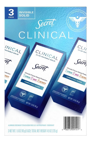 O desodorante clínico secreto BW5EXP 3 com perfume Completely Clean vem em um pacote de três, com cada desodorante pesando 45 gramas. Essa fórmula avançada oferece proteção clínica contra suor e odor, garantindo que você permaneça fresco e confiante durante todo o dia.