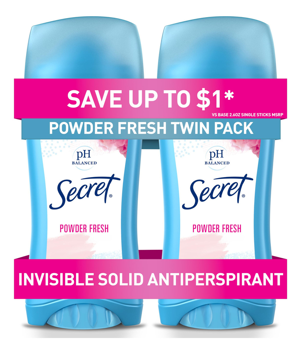 Secret Original, fresco, 2,6 onças, pó variado de 5,2 onças (pacote com 2) — Mantenha-se fresco e seco o dia todo com o pó sólido Secret Invisible Solid Powder Fresh — Fórmula exclusiva com pH balanceado que funciona com a química natural do seu corpo — Proteção duradoura e confiável contra suor e odor 24 horas — Secret é resistente ao suor e suave para a pele — Marca #1 para proteção contra suor e odor* *Para mulheres, com base nos dados totais de vendas da categoria 52 semanas que terminam em 8/8/8 23