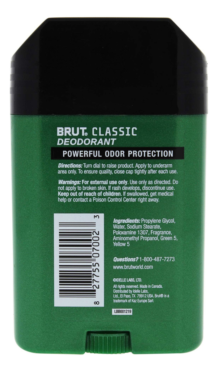 Desodorante masculino Brut Classic, 2,25 onças — Desodorante em bastão com aroma masculino icônico. Nosso desodorante perfumado exclusivo foi desenvolvido para homens que desejam ter um cheiro fresco e único durante todo o dia. Desfrute da fragrância masculina icônica que mantém você livre de odores corporais o dia todo. – Desodorante para axilas com poderosa proteção contra odores. Nosso desodorante para axilas não apenas mascara odores fortes, mas os elimina com a avançada tecnologia de eliminação de odores da BRUT, fornecendo proteção poderosa e duradoura contra odores durante todo o dia. – Desodorante masculino com aroma duradouro. Este desodorante perfumado para homens oferece um desodorante em bastão com aroma fresco que dura o dia todo. Ótimo para estilos de vida ativos, ele mantém você fresco para que você possa se manter confiante. — Bastão de desodorante sem alumínio. Nosso desodorante em bastão não contém alumínio, parabenos e ftalatos. É um desodorante sólido que oferece proteção contra odores para frescor durante todo o dia, tornando-o perfeito para estilos de vida ativos. – DEFENDA SUA INDIVIDUALIDADE. Como os homens que o usam, BRUT personifica confiança por meio do poder da fragrância. Mais do que uma parte de sua rotina diária, ela foi projetada para deixar uma boa impressão.